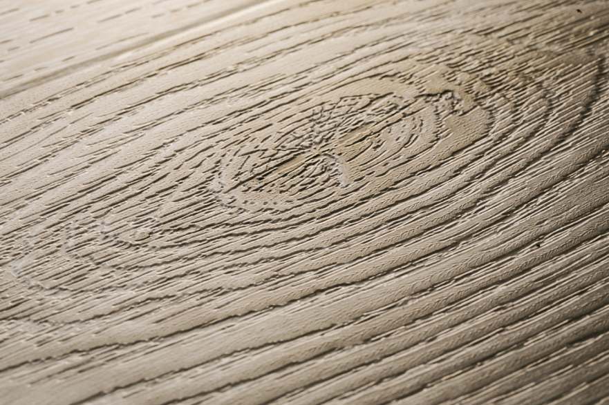 Die floors@work Kollektion zeichnet sich durch eine durchdachte Struktur aus, beginnend mit einer Kunststoffrückenschicht, gefolgt von einer stabilisierenden Trägerschicht, auf der das beeindruckende Dekor ruht. Die transparente Nutzschicht an der Spitze des Designbodenbelags besteht aus PVC und ist zusätzlich mit einer Oberflächenvergütung aus Polyurethan (PU) ausgestattet.