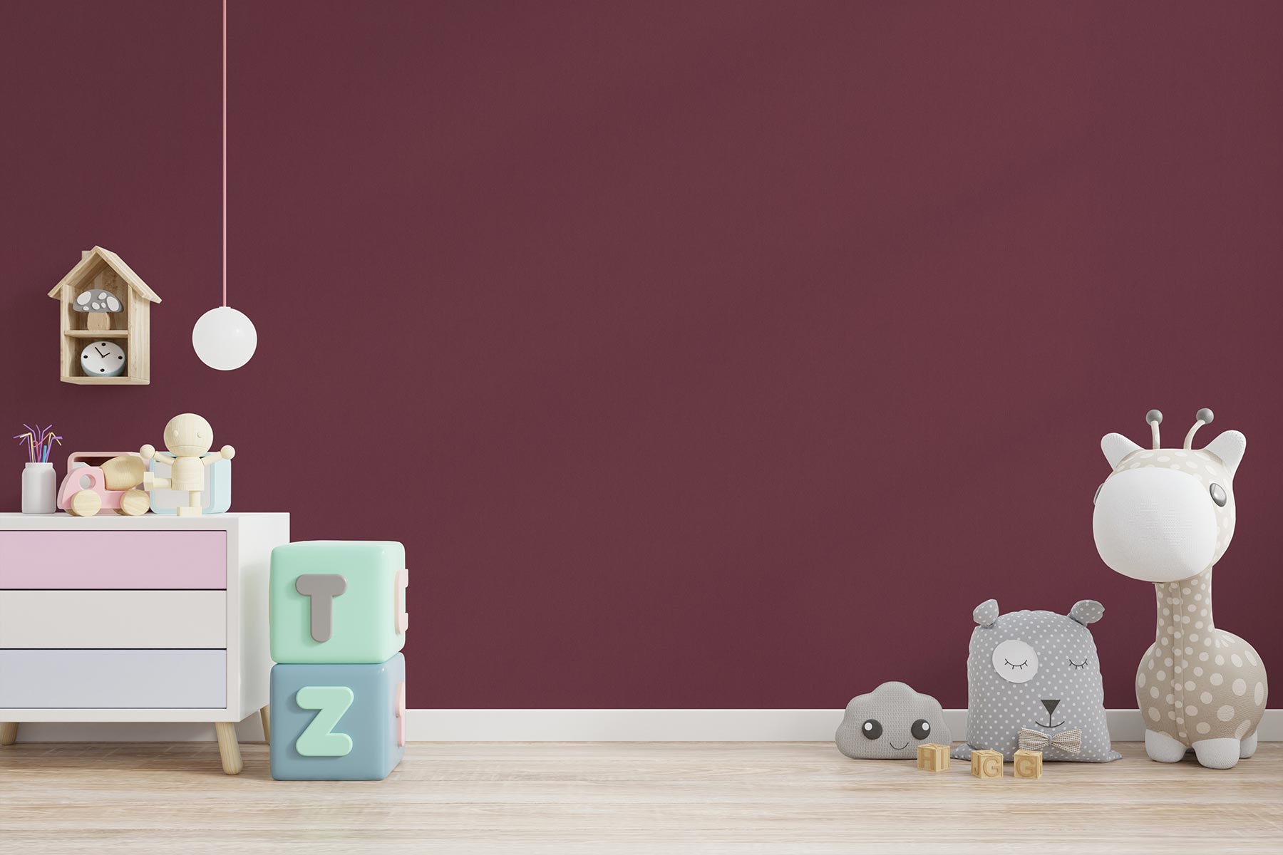 - Farbe der Tapete: Rot,
