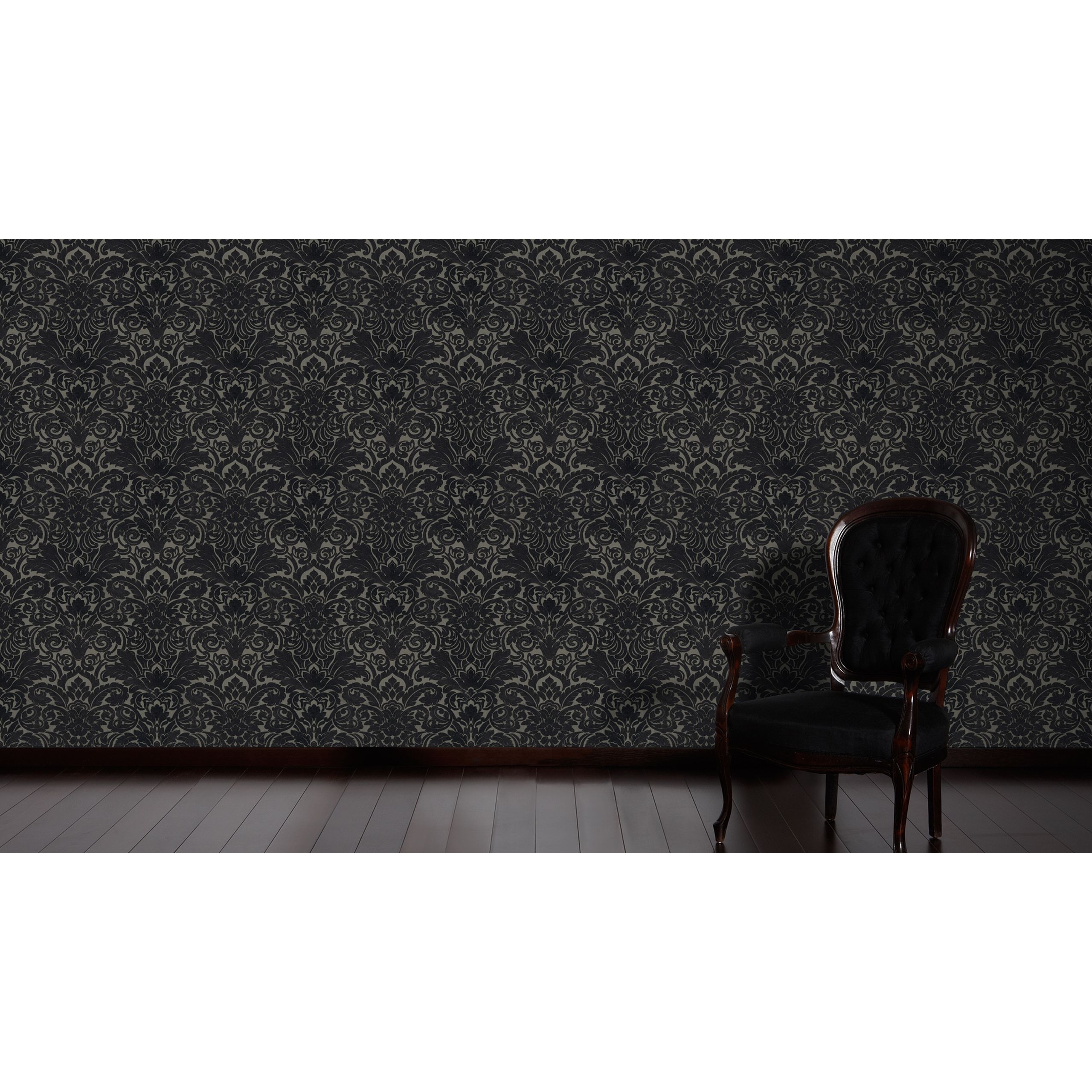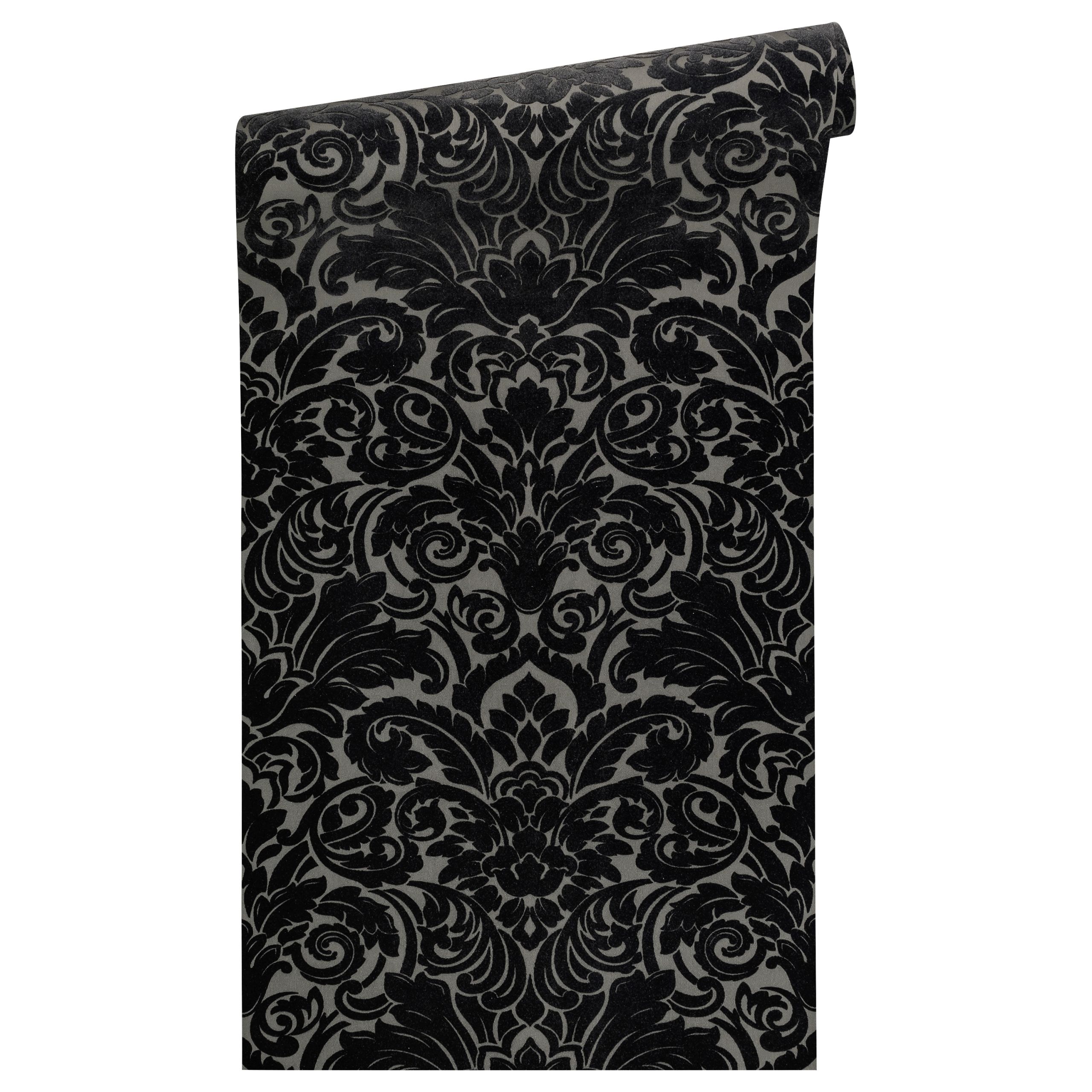 Dies ist eine Tapete aus der Kollektion „AP Castello“ von „Architects Paper“; einer Marke des Herstellers „A.S. Création“. Imponierend treffen ausdrucksvolle Ornamente auf den zeitgemäßen Stil und auf die expressive Farbwahl. Durch den verwendeten Echtflock fühlt man eine ganz besondere textile Anmutung.