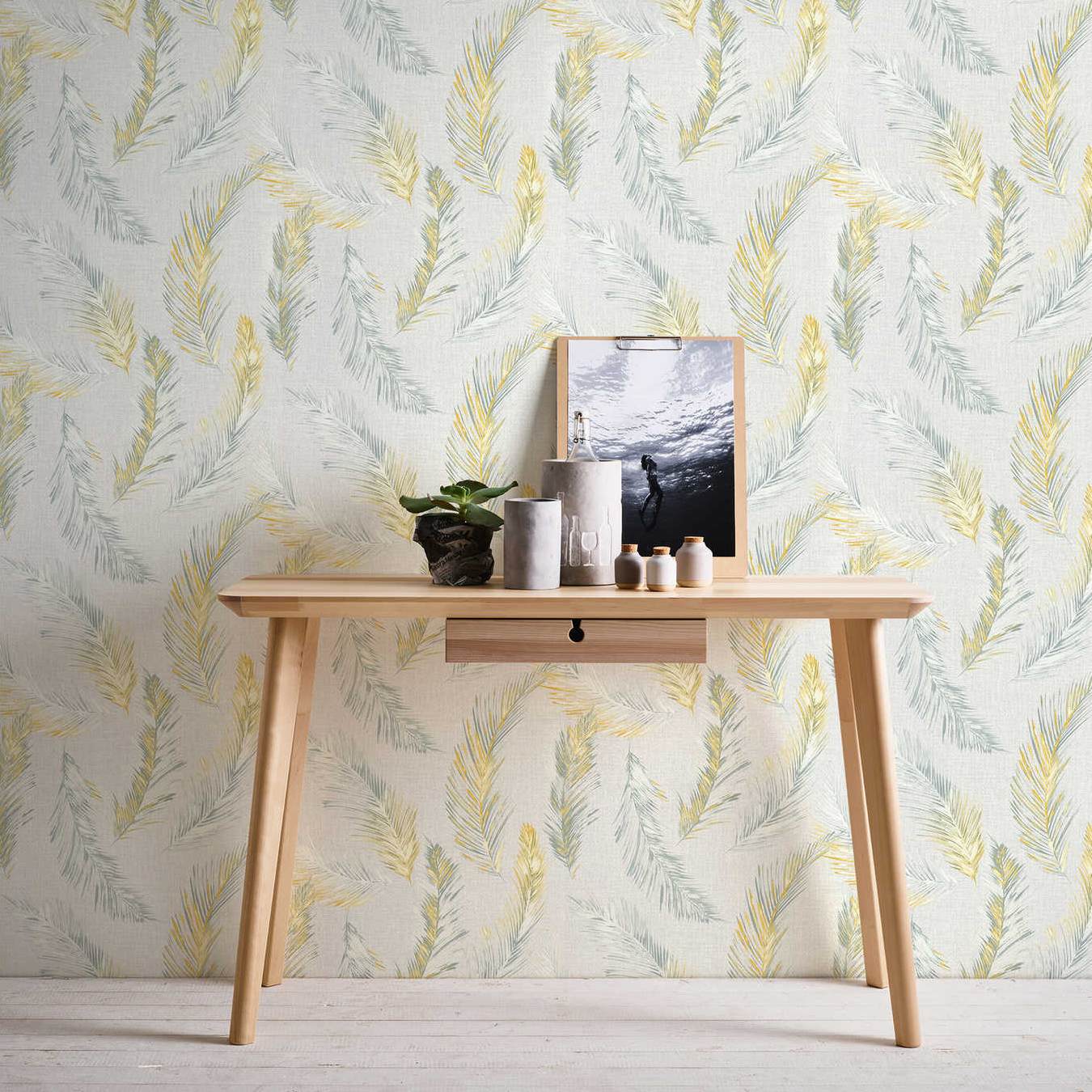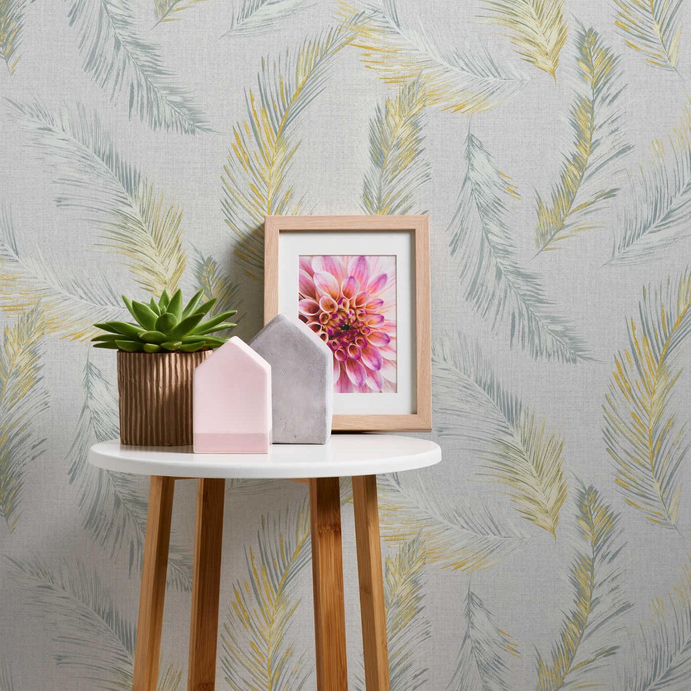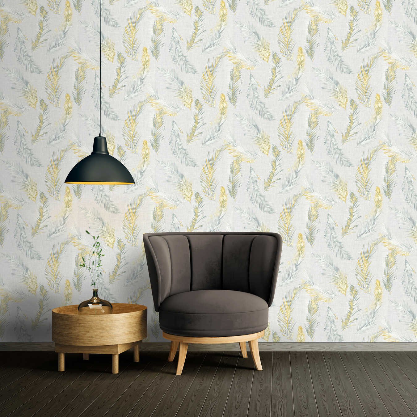 - Farbe der Tapete: Gelb, Grau