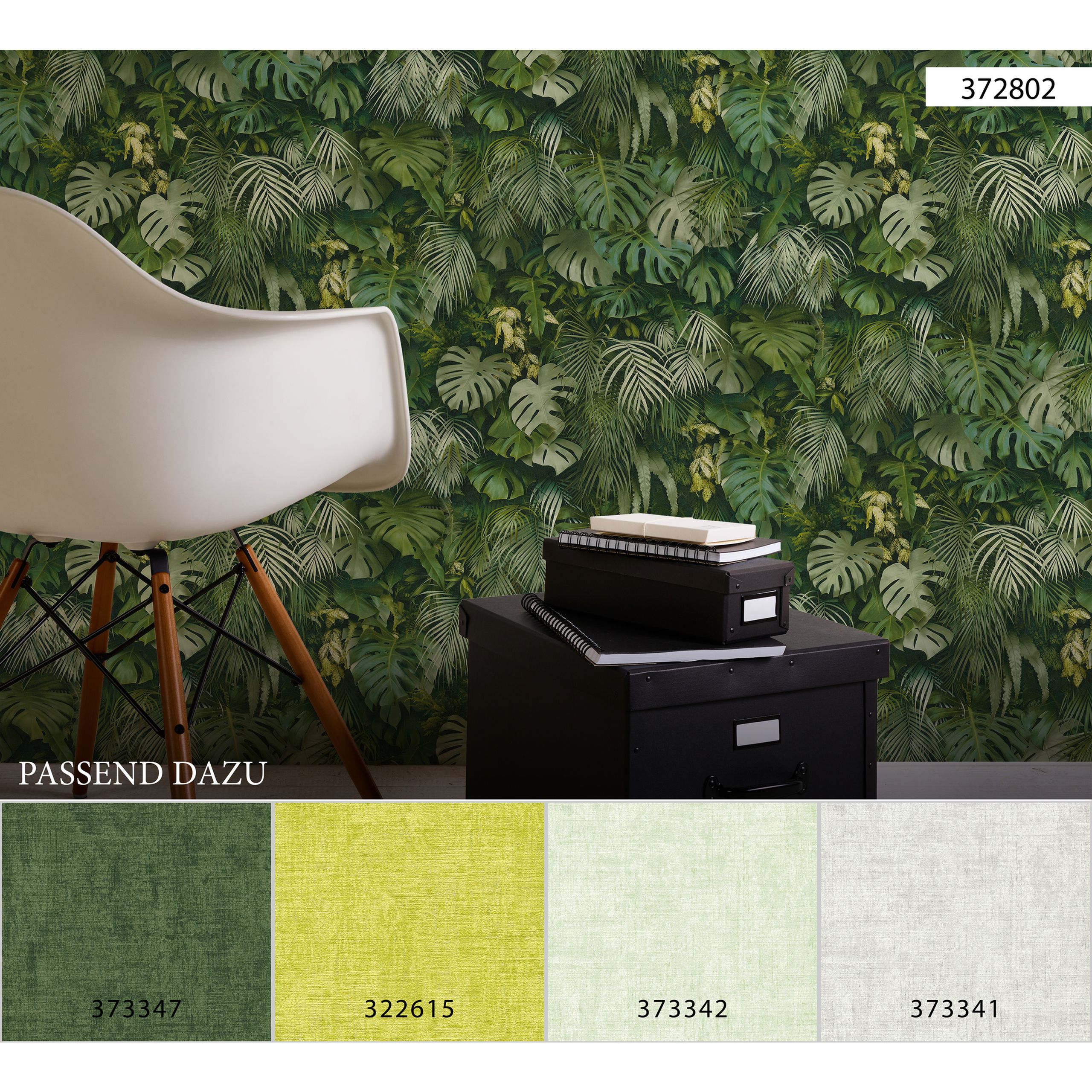 Die Kollektion Greenery von A.S. Creation enthält viele Tapeten mit Pflanzenmotiven aus dem Dschungel. Etliche Grüntöne und Motive bringen die Wildnis in Ihr Heim.