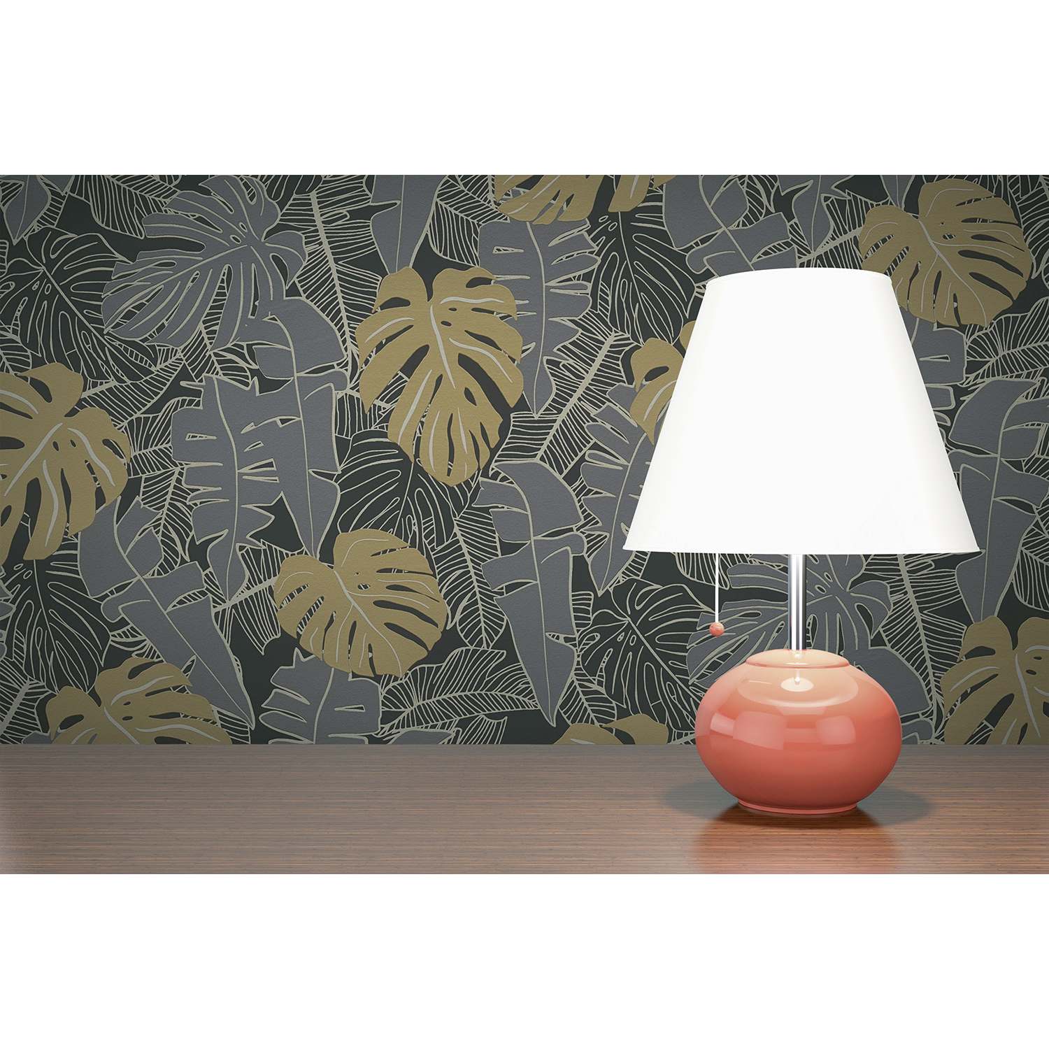 - Farbe der Tapete: Schwarz, Gold, Grau