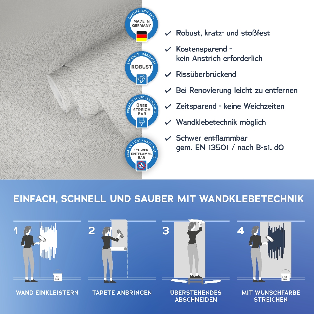 Alle wichtigen Informationen finden Sie auch auf dem Beipackzettel jeder Tapetenrolle.