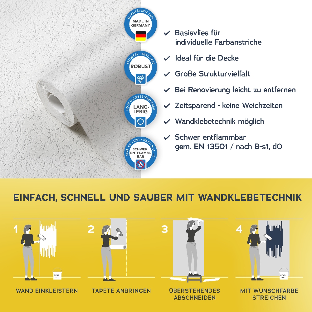 Alle wichtigen Informationen finden Sie auch auf dem Beipackzettel jeder Tapetenrolle.
