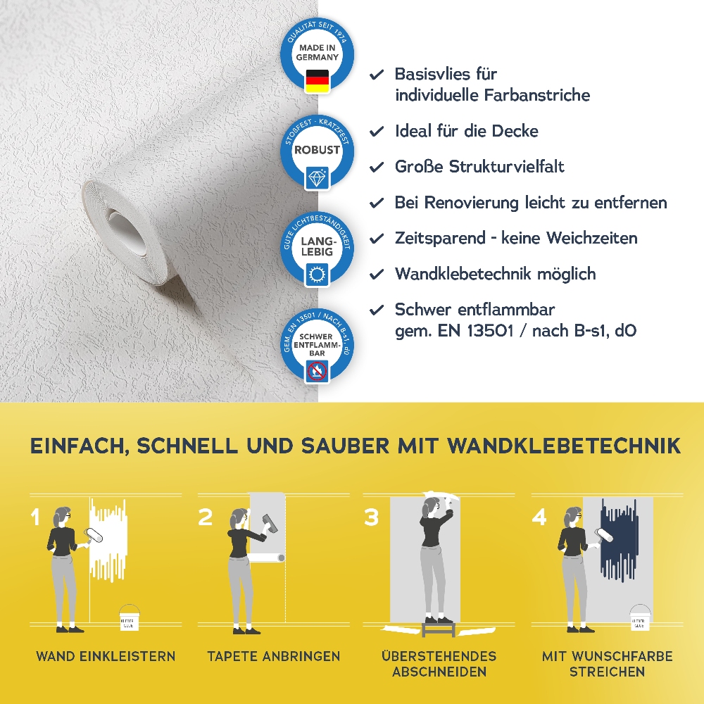 Alle wichtigen Informationen finden Sie auch auf dem Beipackzettel jeder Tapetenrolle.