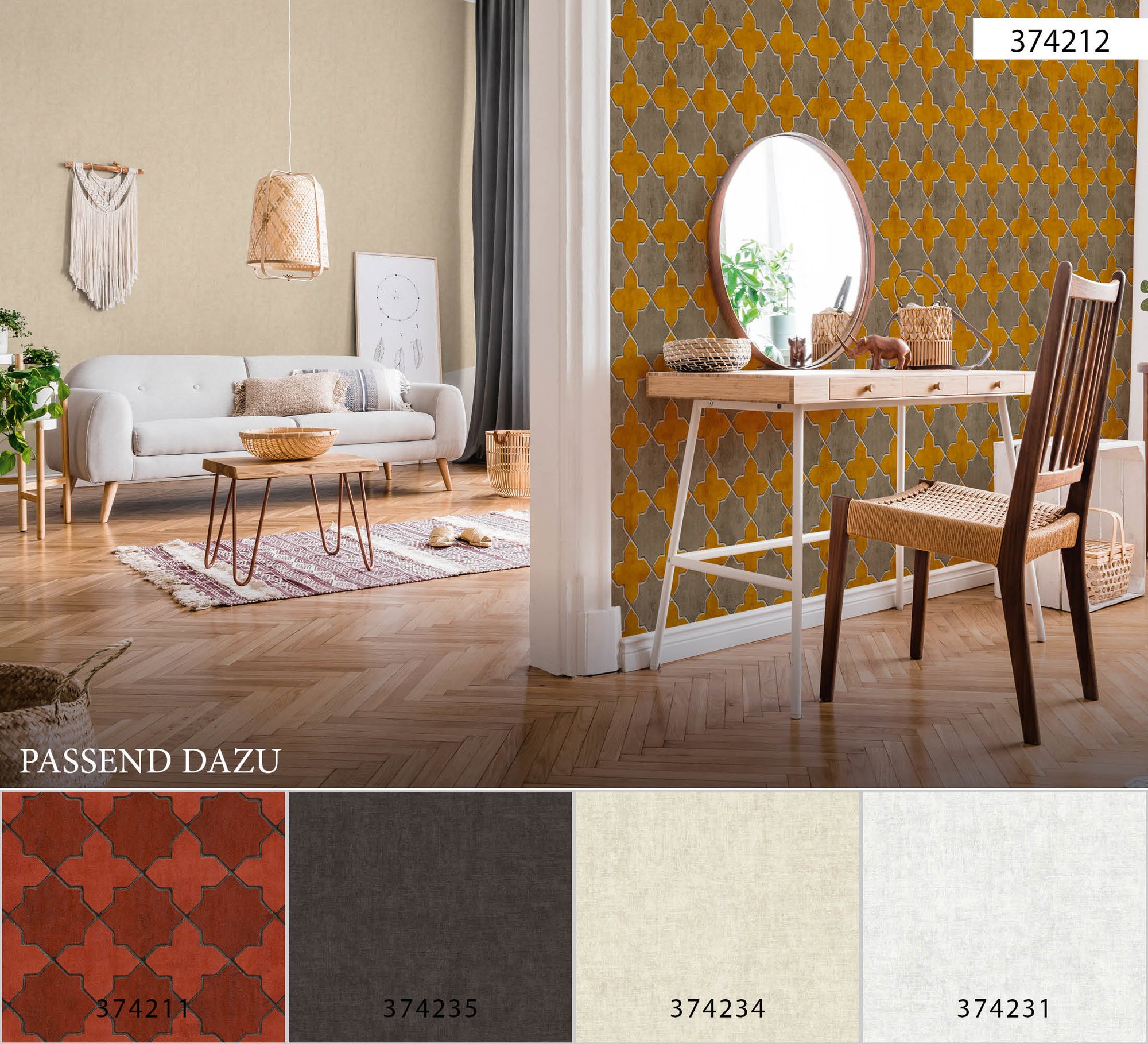 Hinweis: Durch unterschiedliche Monitoreinstellungen sind kleine Farbabweichungen bei der Bilddarstellung möglich. Sie haben die Möglichkeit ein Muster zu bestellen, um sich vorab ein genaues Bild von der Optik und Haptik der Tapete zu machen.