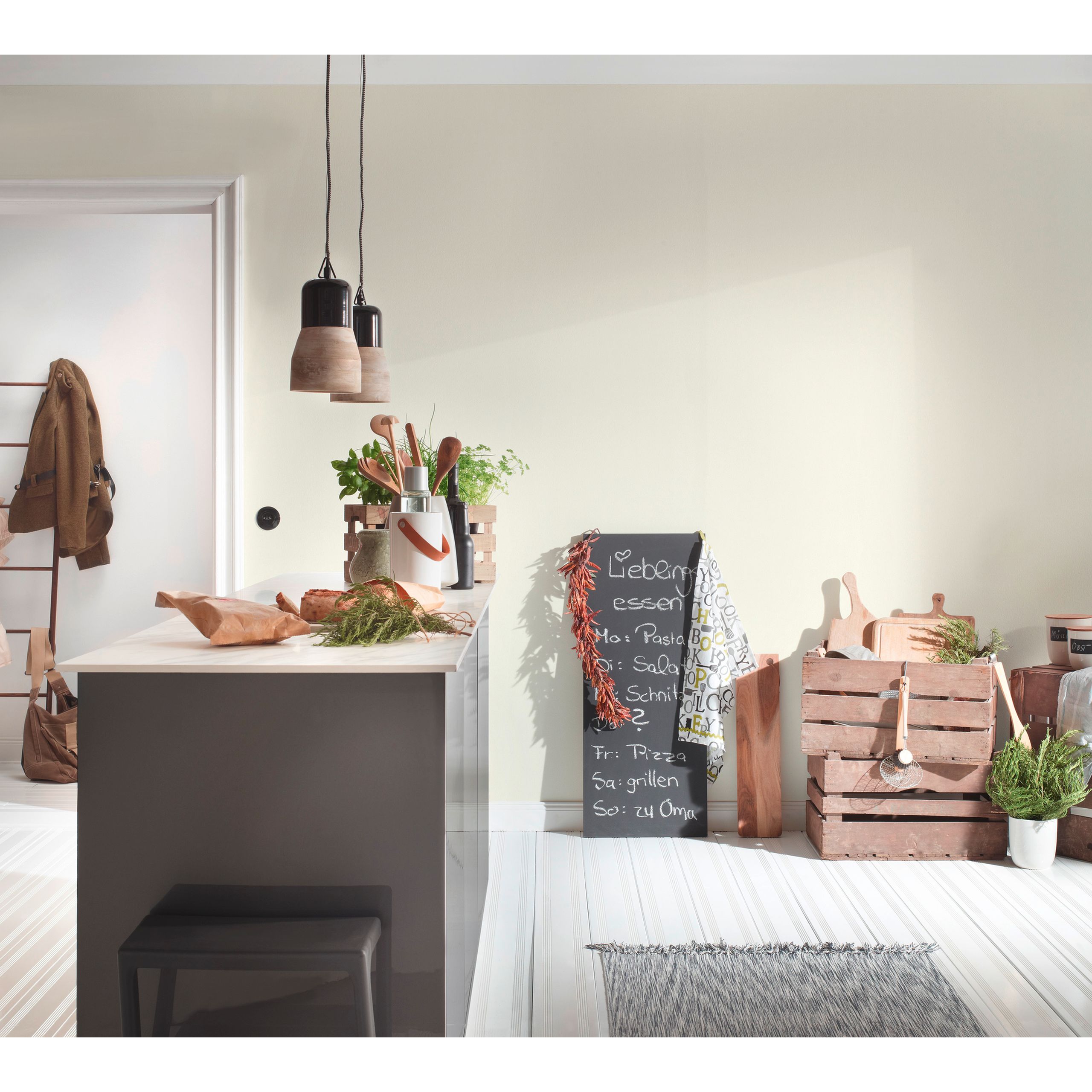 - Farbe der Tapete: Creme