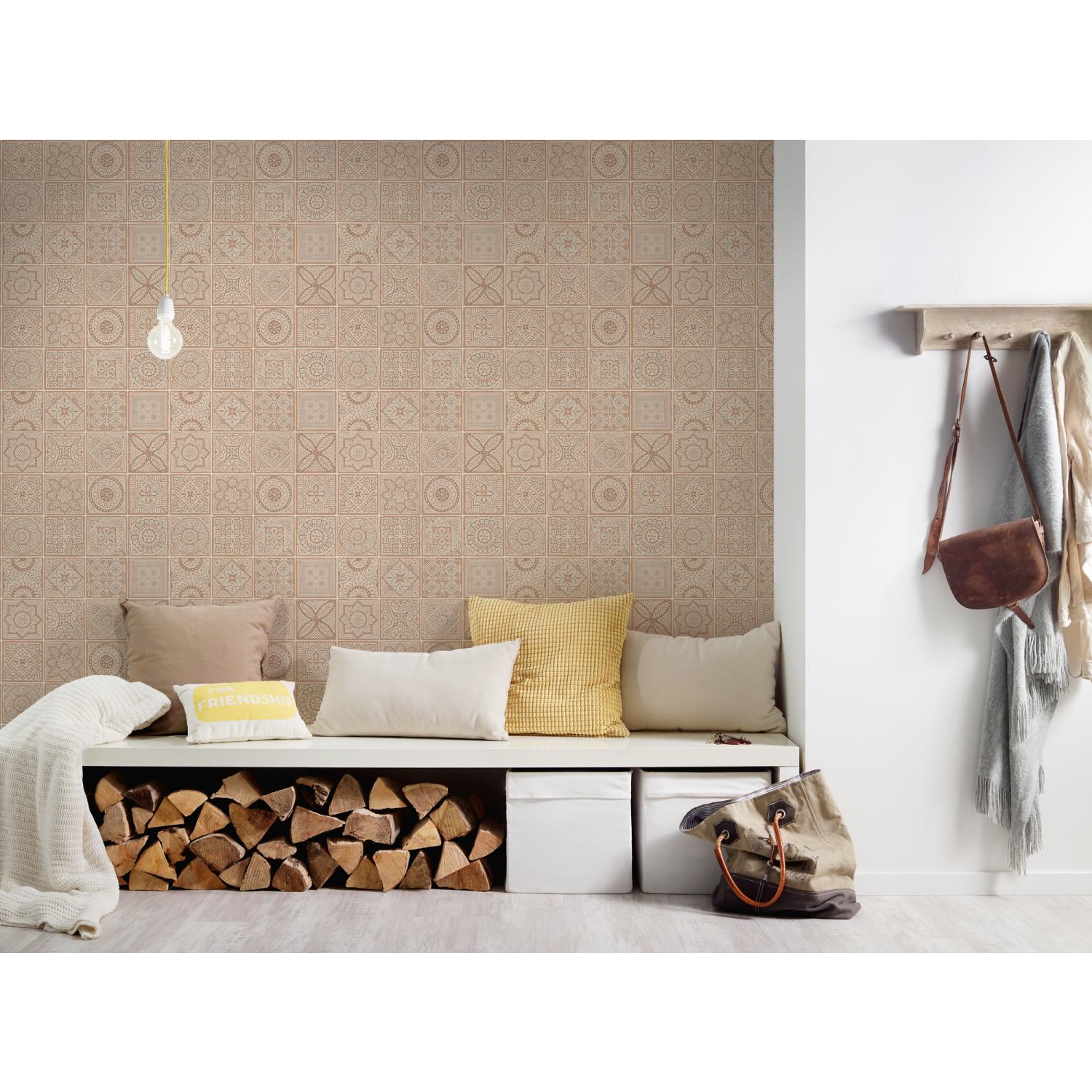 - Farbe der Tapete: Rosa, Creme, Metallic