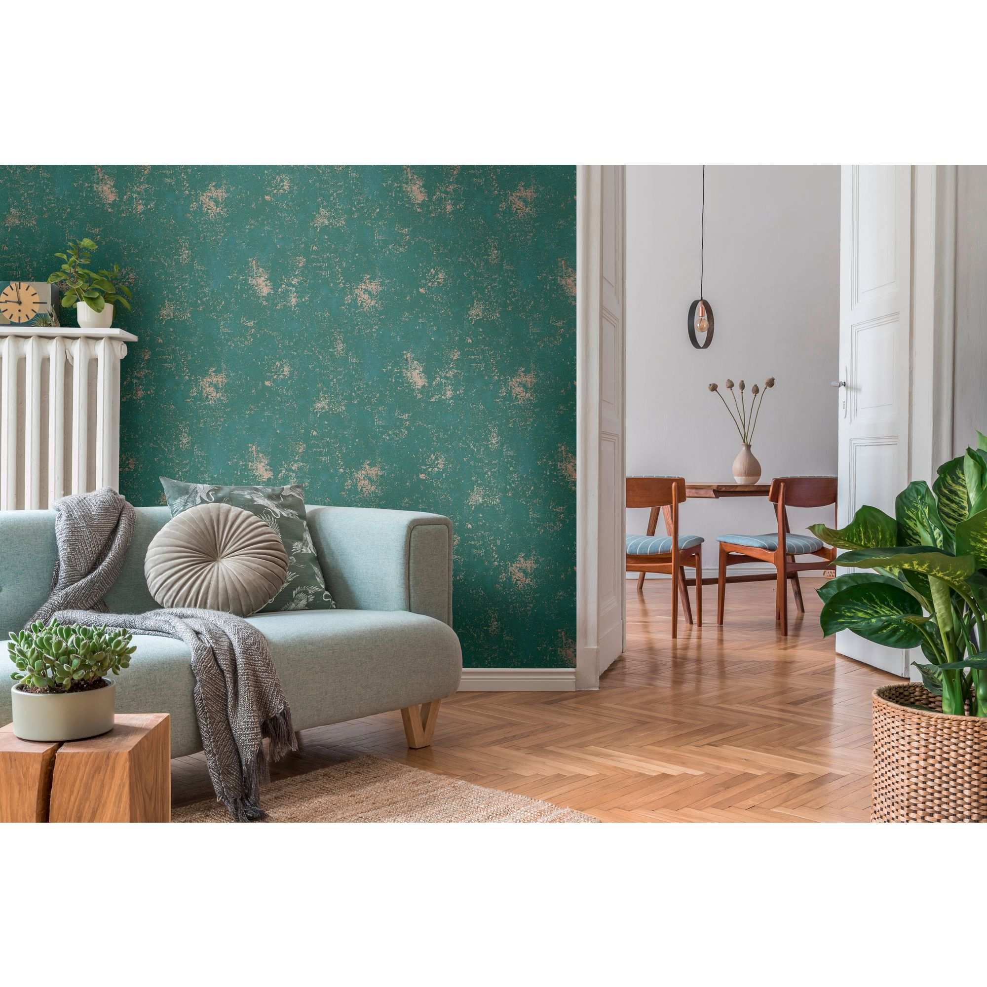- Farbe der Tapete: Grün