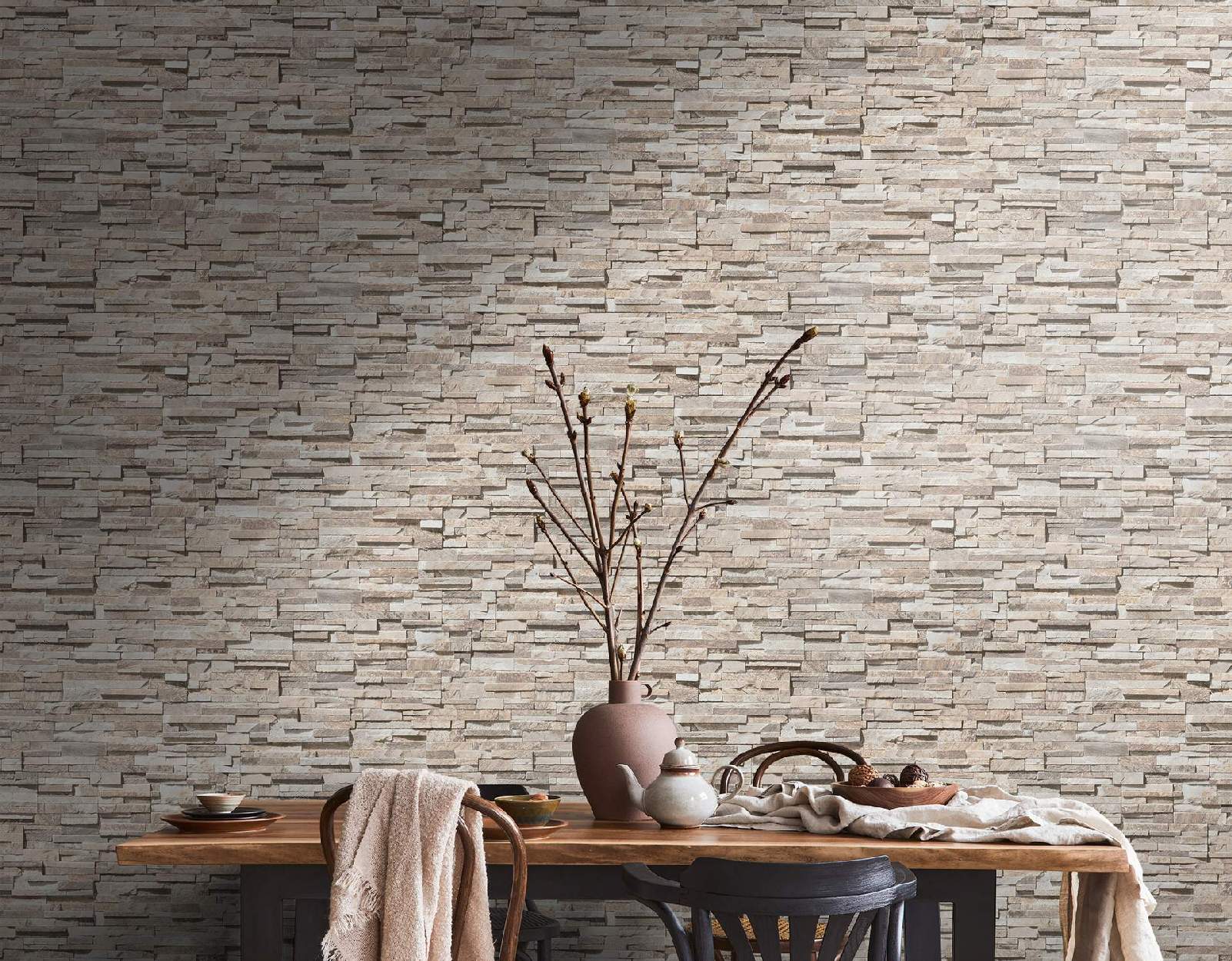 - Farbe der Tapete: Beige, Braun
