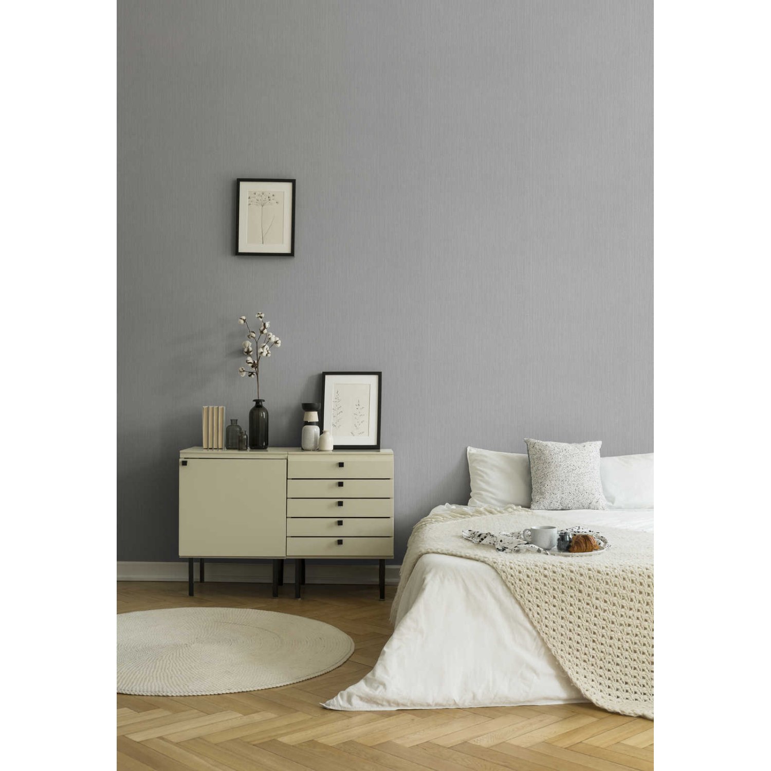 - Farbe der Tapete: Grau