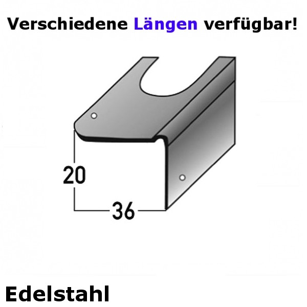 - GRÖSSE: Das Winkelprofil mit den Abmessungen 36 x 20 x 1000 mm mm und schafft einen sauberen Abschluss an der Treppenkante.