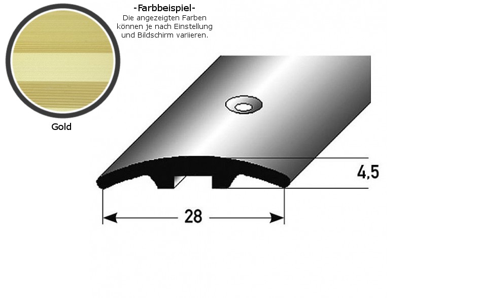 - GRÖSSE: Das Übergangsprofil mit den Abmessungen 28 x 4.5 x 900 mm schafft einen sauberen Übergang zwischen verschiedenen Bodenbelägen.