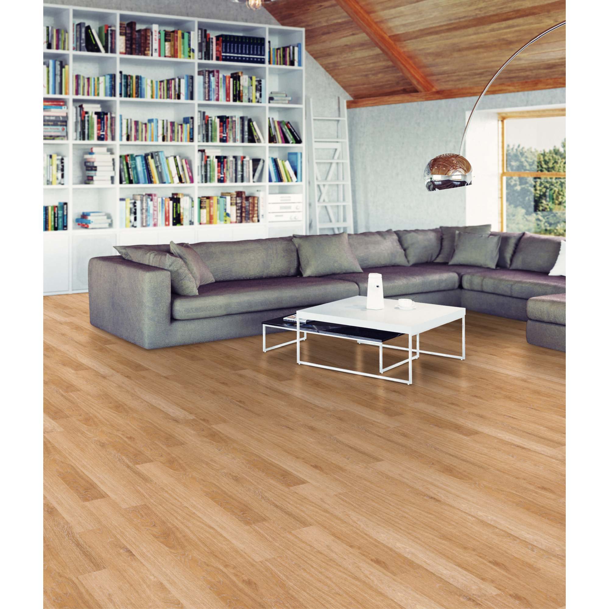Wähle aus fast 100 verschiedenen Designs in Holz-, Stein-, Beton- und Keramik-Optik und gestalte deine Räume nach deinem persönlichen Stil. Der Floors@home Design Vinylboden vereint Ästhetik und Funktionalität, um deinem Zuhause eine warme und ansprechende Atmosphäre zu verleihen.