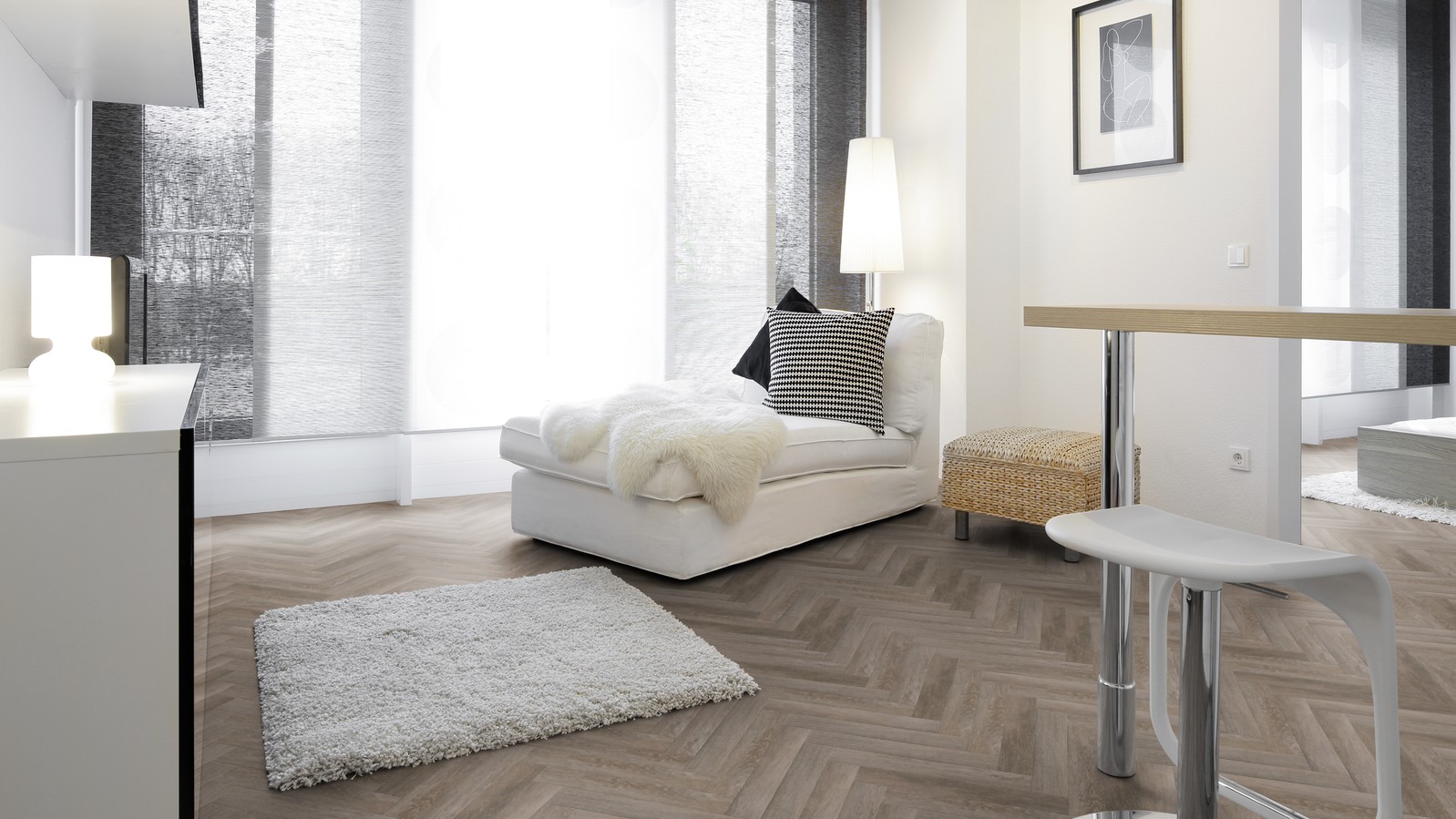 Aktuell und stylisch präsentiert sich der Bodenbelag der Herringbone Kollektion von PROJECT FLOORS im angesagten Fischgrät Muster. Diese Kollektion bietet dir die Wahl aus 10 Dekoren, präsentiert auf kleinen Planken im Format 457x76 mm. Diese lassen sich nicht nur klassisch im Fischgrät Muster, sondern auch im modernen Leiterboden oder im zeitlosen Holzblock Muster verlegen.