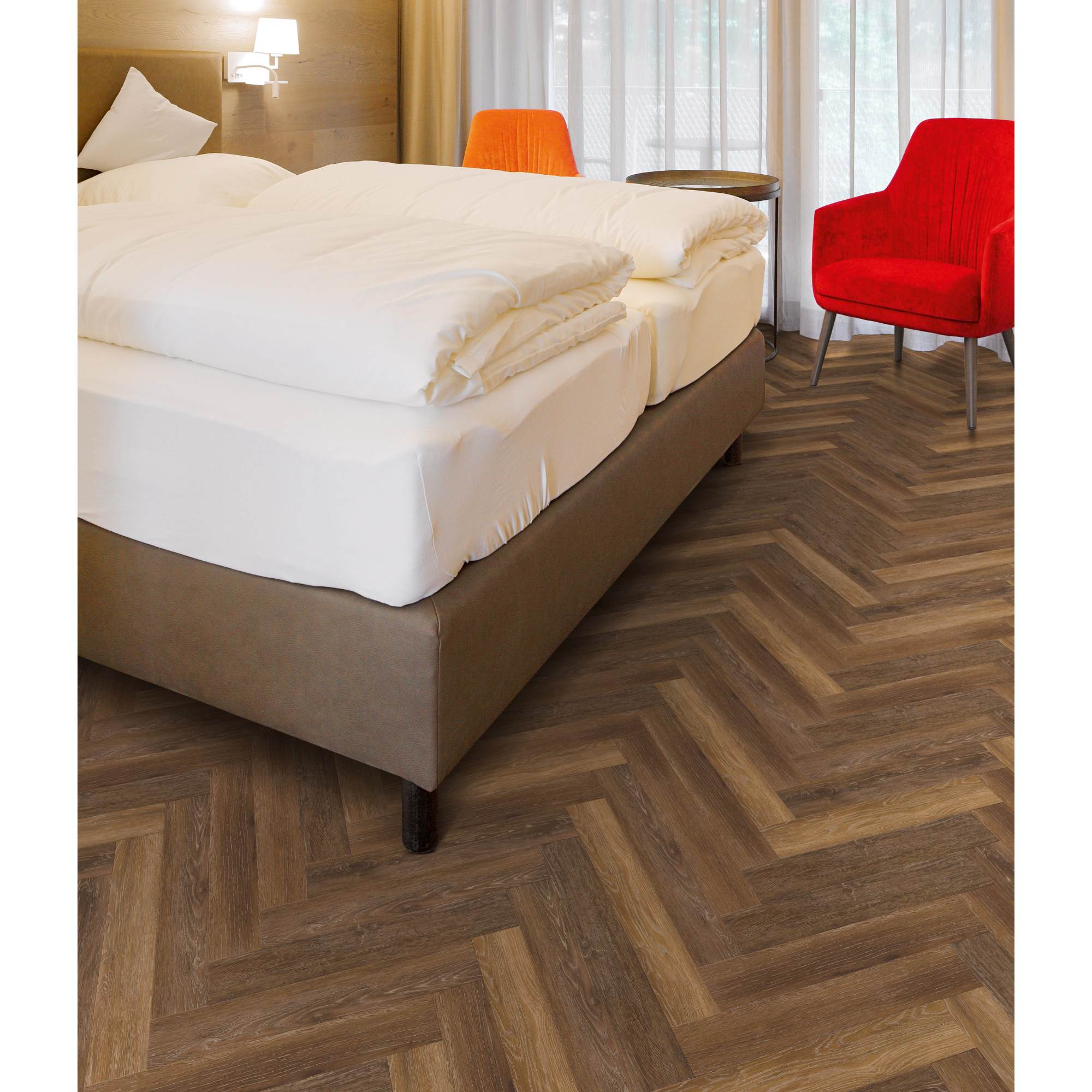 Aktuell und stylisch präsentiert sich der Bodenbelag der Herringbone Kollektion von PROJECT FLOORS im angesagten Fischgrät Muster. Diese Kollektion bietet dir die Wahl aus 10 Dekoren, präsentiert auf kleinen Planken im Format 457x76 mm. Diese lassen sich nicht nur klassisch im Fischgrät Muster, sondern auch im modernen Leiterboden oder im zeitlosen Holzblock Muster verlegen.