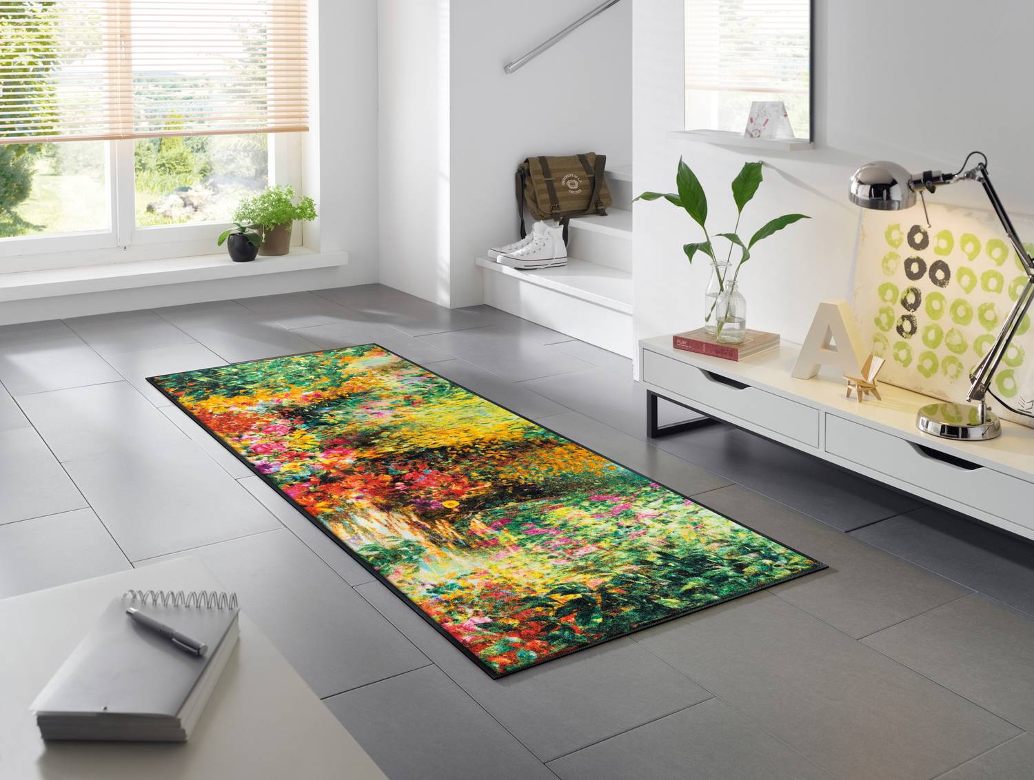 Die Farbdarstellung der Bilder kann je nach Monitoreinstellung leicht abweichen. Produktionsbedingt sind geringe Maß- und Farbabweichungen bis zu +/- 3% möglich. Auf PVC-, Linoleum-, Laminat- und Holzoberflächen kann es durch den Gummirücken zu Farbveränderungen kommen.
