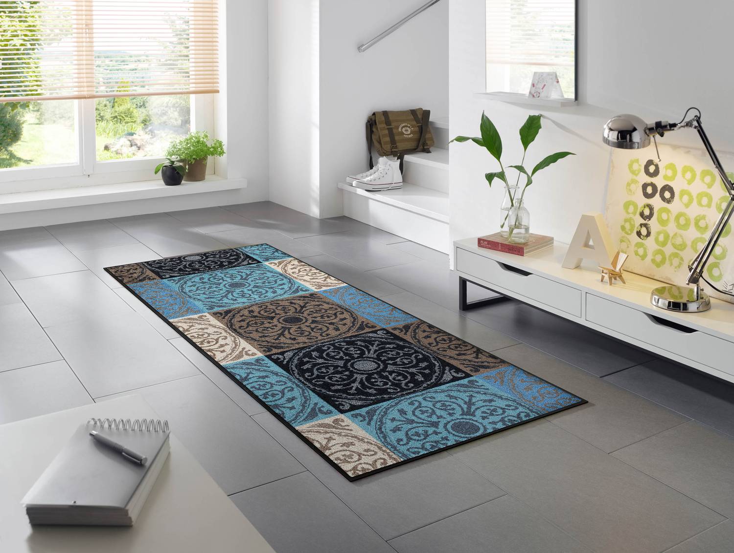 Entdecke die wash+dry Design Kollektion - Deine Lösung für ein hygienisches und stilvoll gestaltetes Zuhause! Diese hochwertigen Matten und Teppiche vereinen effektive Schmutzaufnahme mit exklusivem Design. Der dichtere, etwas höhere Flor von 7 mm sorgt für eine hervorragende Schmutzaufnahme und macht die Reinigung zum Kinderspiel. Perfekt für Allergiker und Tierbesitzer: Die hohe Schmutzbindung verbessert die Raumluftqualität spürbar. Dank der robusten, rutschfesten Beschaffenheit bieten sie sicheren Halt in Innenräumen und überdachten Außenbereichen.