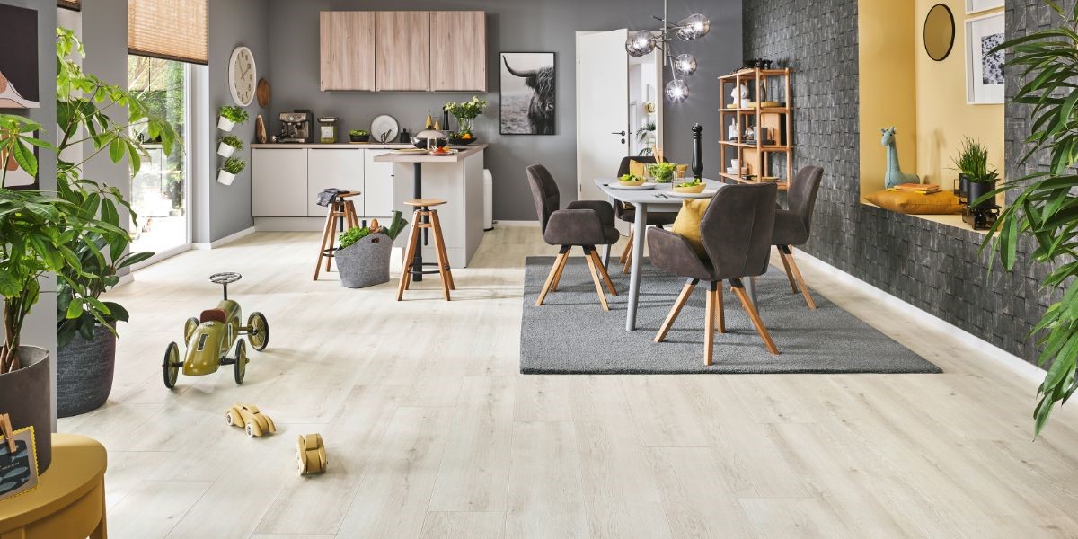 Der Preis für günstiges Klick Laminat hängt von verschiedenen Faktoren ab, wie zum Beispiel der Stärke, der Oberflächenstruktur, dem Abriebgrad und dem Hersteller. In unserem Onlineshop kannst Du schon ab 19,95 € pro Quadratmeter hochwertiges Klick Laminat kaufen. Das ist deutlich günstiger als andere Bodenbeläge wie Parkett, Teppich oder Fliesen. Außerdem sparst Du Dir die Kosten für einen Fachmann, denn Du kannst das Klick Laminat ganz einfach selbst verlegen.