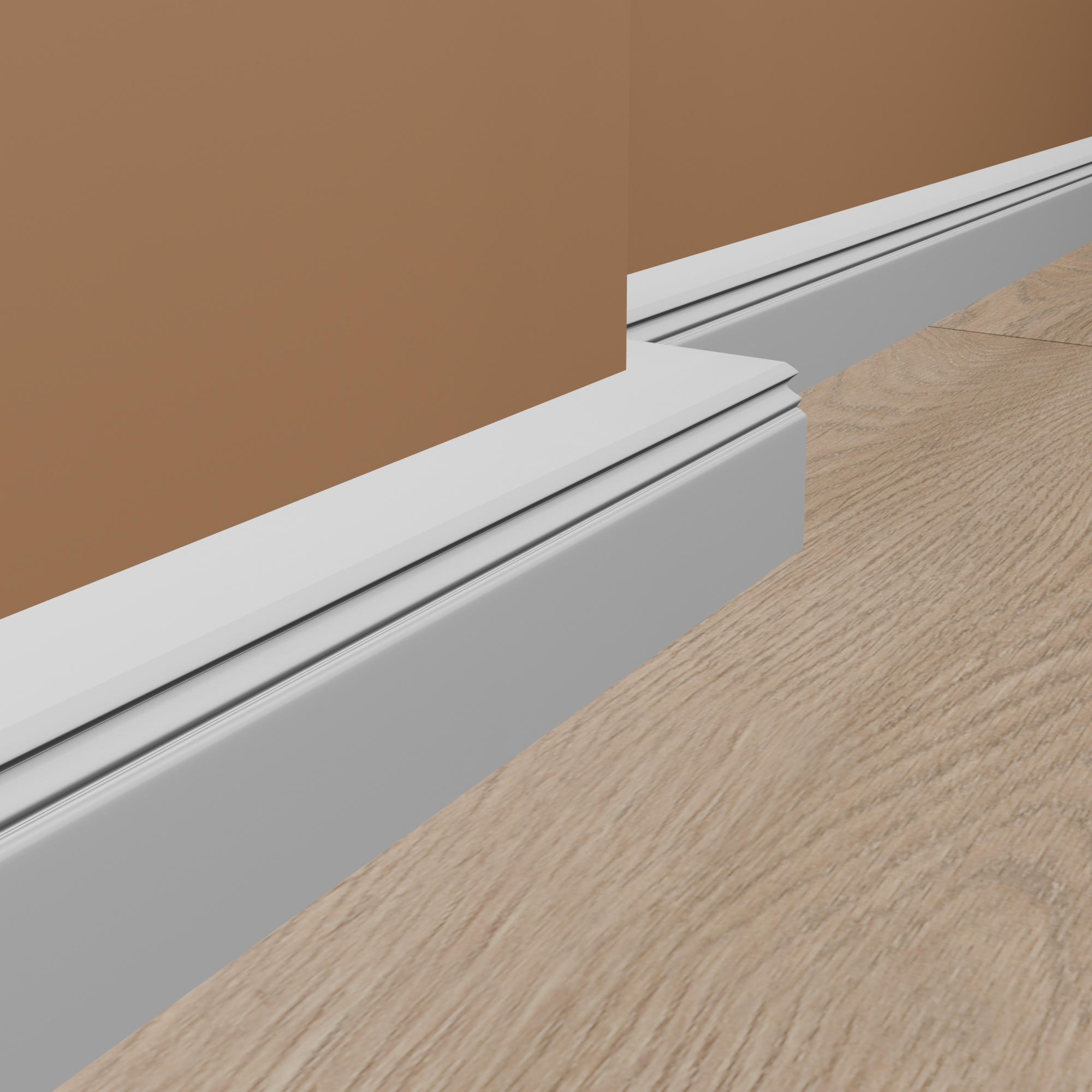 - GRÖSSE: Die Fußleiste mit den Abmessungen 64 x 96 x 2500 mm schafft einen sauberen Übergang zwischen Boden und Wand.