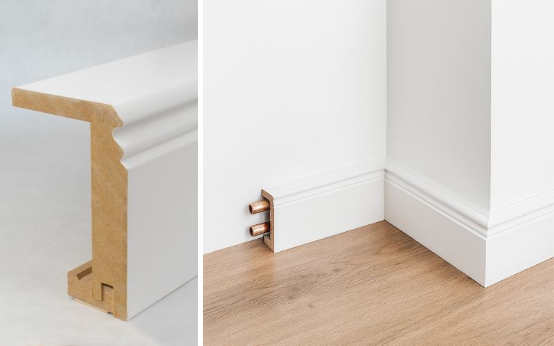 - Design: Eine Sockelleiste mit Rohrkanal kann sogar als gestalterisches Element dienen und gezielte Akzente in deinem Raum setzen.