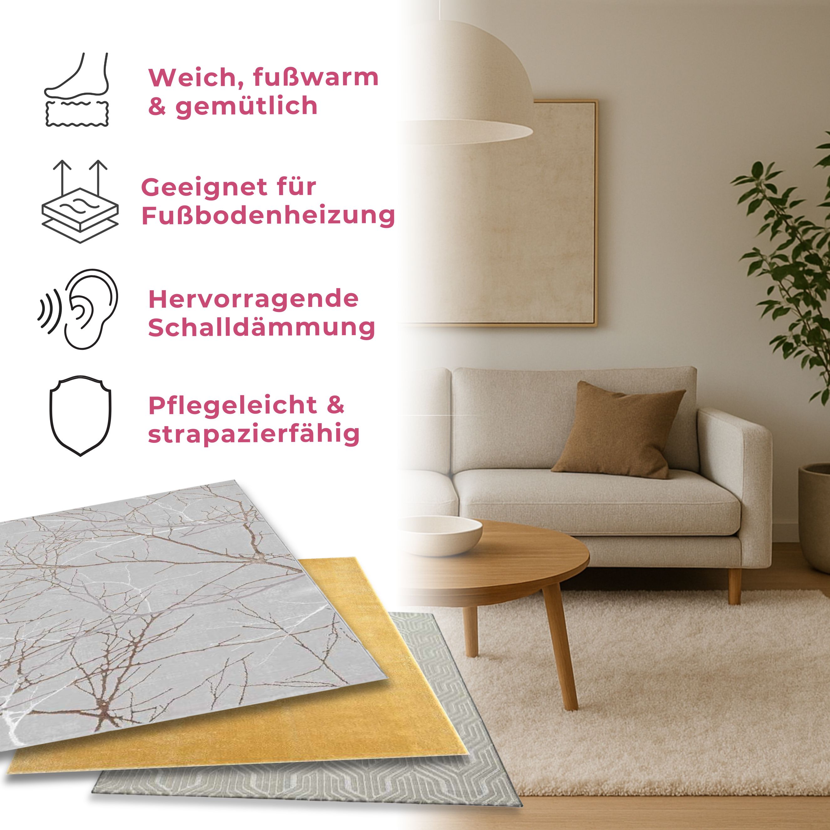 - Fußbodenheizung geeignet: Optimal für jede Wohnsituation
