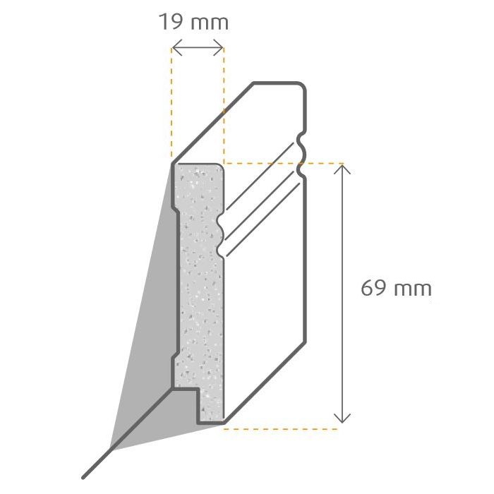 - GRÖSSE: Die Fußleiste mit den Abmessungen 16 x 69 x 2500 mm schafft einen sauberen Übergang zwischen Boden und Wand.