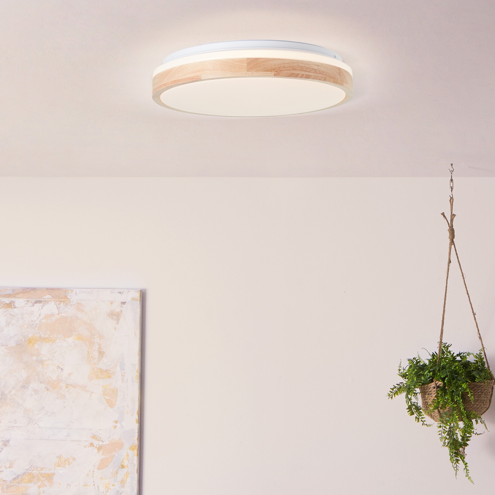 LED Deckenleuchte 9 x 39 cm Beige Holz Deckenlampe Natürlich Boho Lichtfarbe: Warmweiß Harmonisch