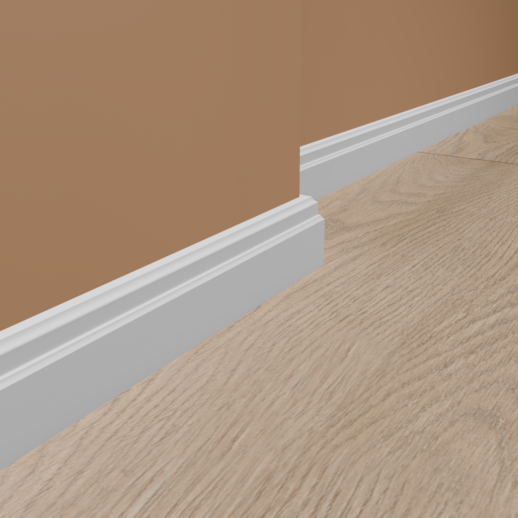 - ANWENDUNGSBEREICH: Die Sockelleiste eignet sich ideal für den Einsatz in nahezu allen Wohnräumen. Sie passt zu vielen Bodenbelägen, einschließlich Holz, Fliesen, Vinyl, Laminat, Teppich und mehr. Hinweis: Die Leiste ist nicht für Feuchträume geeignet.