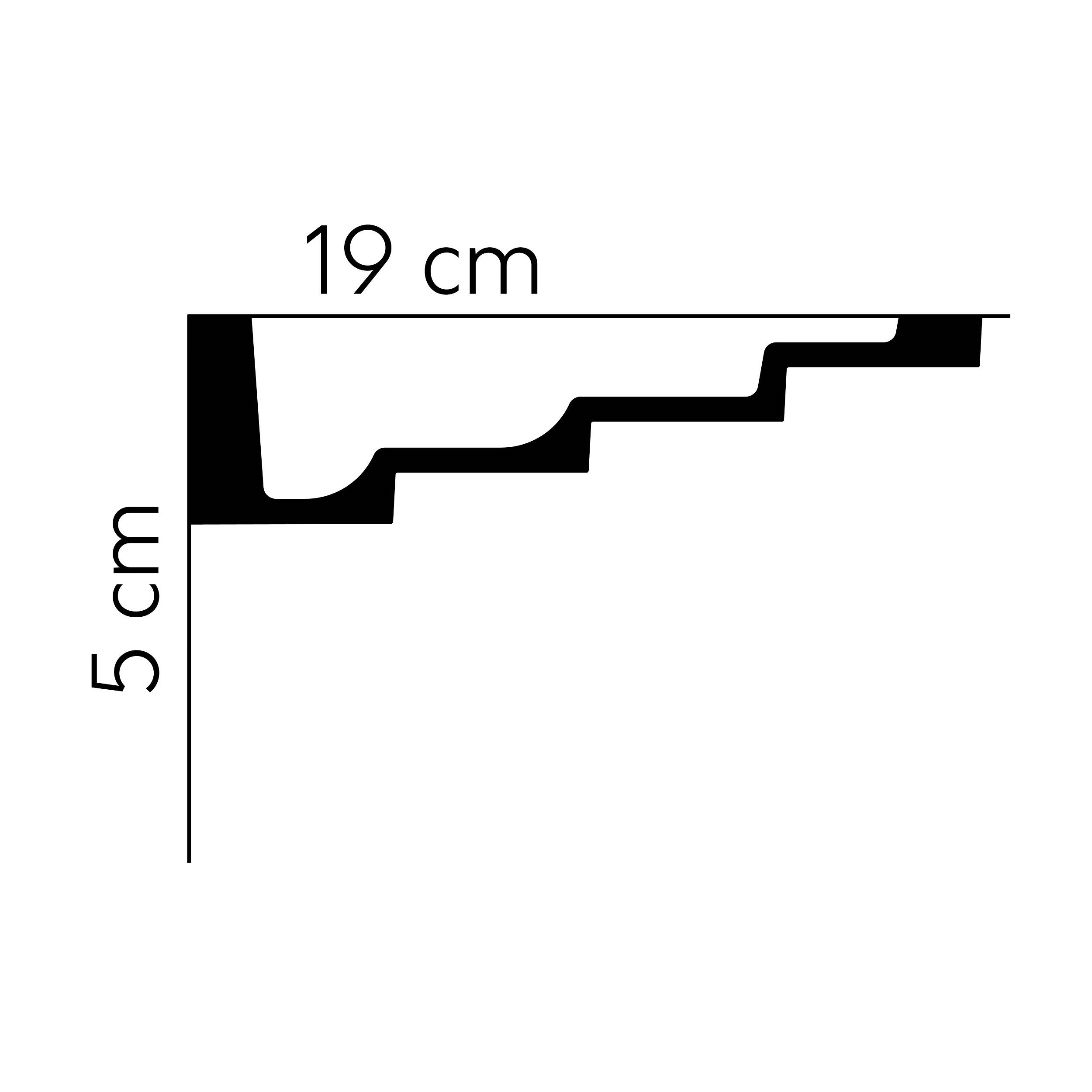 - GRÖSSE: Die Stuckleiste mit den Abmessungen 190 x 50 x 2000 mm schafft einen sauberen Übergang an der Wand oder Decke.