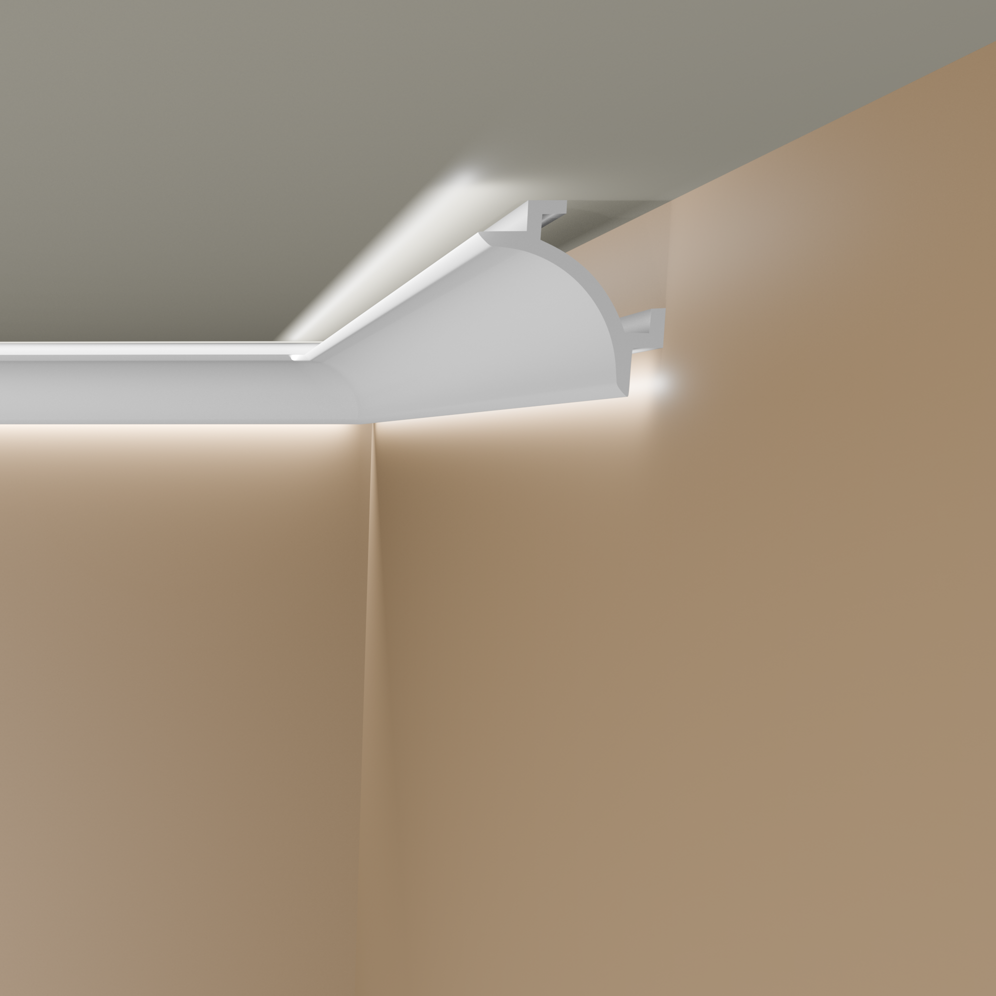 Die Lichtleiste lässt sich ganz einfach und sauber mit passendem Montagekleber befestigen. Sie ist zudem mit einer schützenden und glättenden Grundierung versehen, die eine optimale Grundlage für den späteren Anstrich bildet. Bestellen Sie unter "Zubehör" passendes Montagezubehör gleich mit dazu.