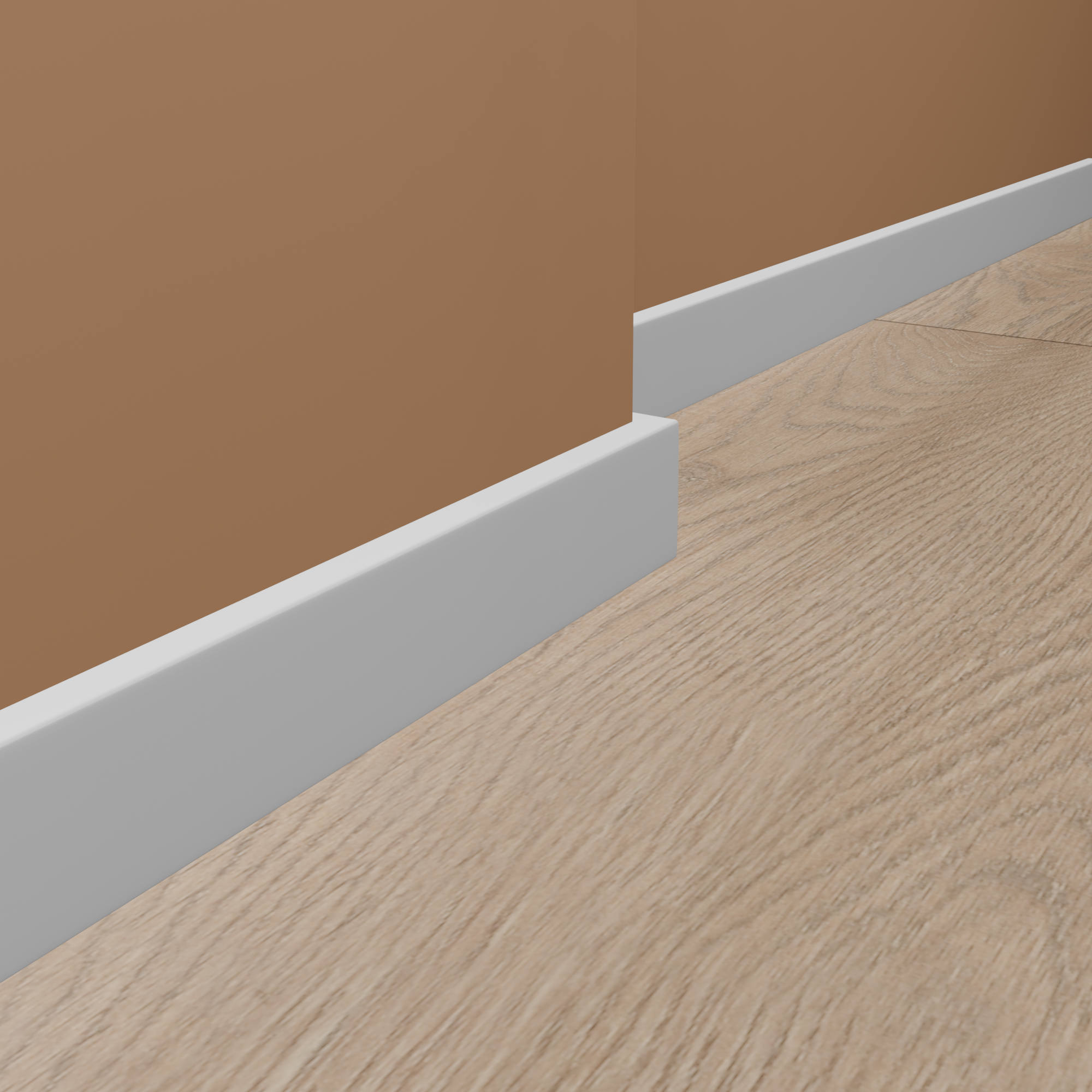 - GRÖSSE: Die Fußleiste mit den Abmessungen 15 x 58 x 2400 mm schafft einen sauberen Übergang zwischen Boden und Wand.