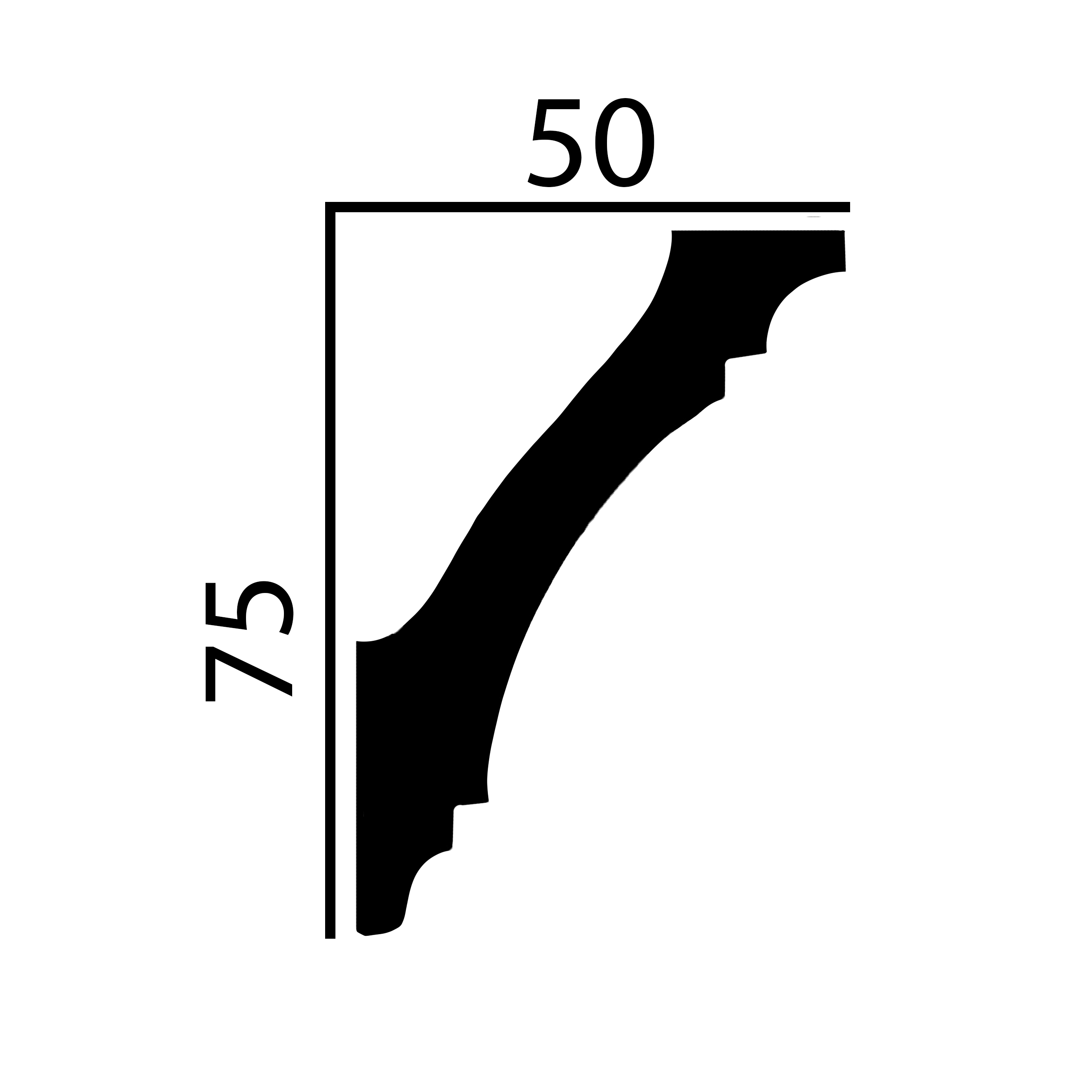 GRÖSSE: Die Innenecke wird mit den Abmessungen 50 x 75 x 200 mm geliefert.