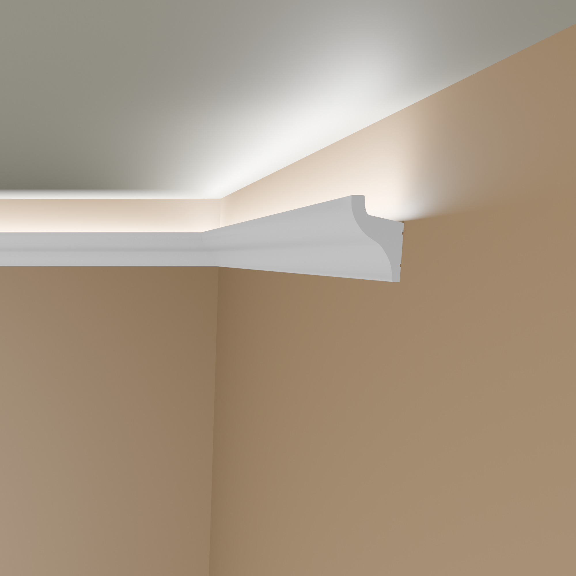 Die Lichtleiste " IL3 " ist eine reduzierte und elegante Deckenleiste, die in allen Räumen ein optisches Highlight setzt. Die Lichtstuckleiste besticht vor allem durch zurückhaltendes Design, das sich harmonisch in jedes Raumbild anpasst. In der Nut können flexible LED Streifen Ihrer Wahl eingeklebt werden. Die indirekte LED-Beleuchtung sorgt für eine warme und einladende Atmosphäre. Passendes LED Zubehör finden Sie ebenfalls bei uns im Shop.