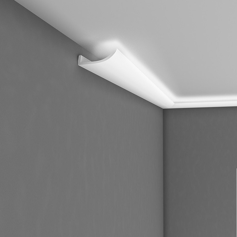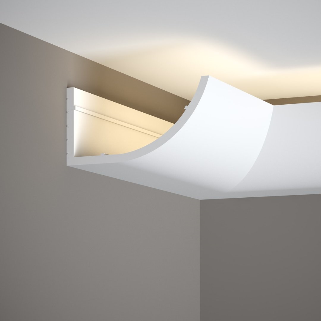 Diese Stuckleiste ist eine klassische und elegant gestaltete Deckenleiste, die Sie in jedem Raum anbringen können. Das stilvolle geschwungene Profil-Design mit formschönen Wölbungen passt sich harmonisch an jedes Interior an.