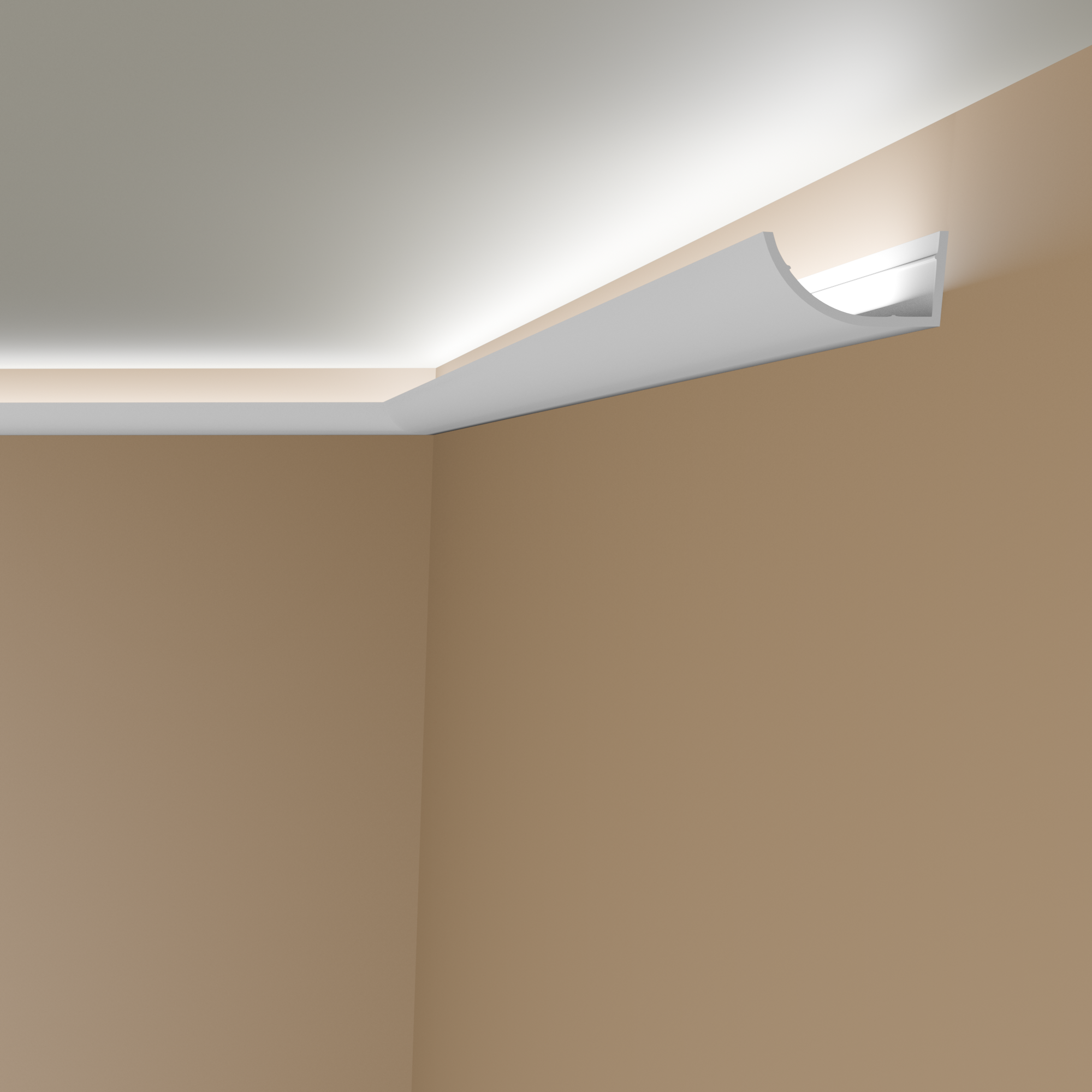 Die LED Stuckleiste lässt sich ganz einfach und sauber mit passendem Montagekleber befestigen. Sie ist zudem mit einer schützenden und glättenden Grundierung versehen, die eine optimale Grundlage für den späteren Anstrich bildet. Bestellen Sie unter "Zubehör" passendes Montagezubehör gleich mit dazu.