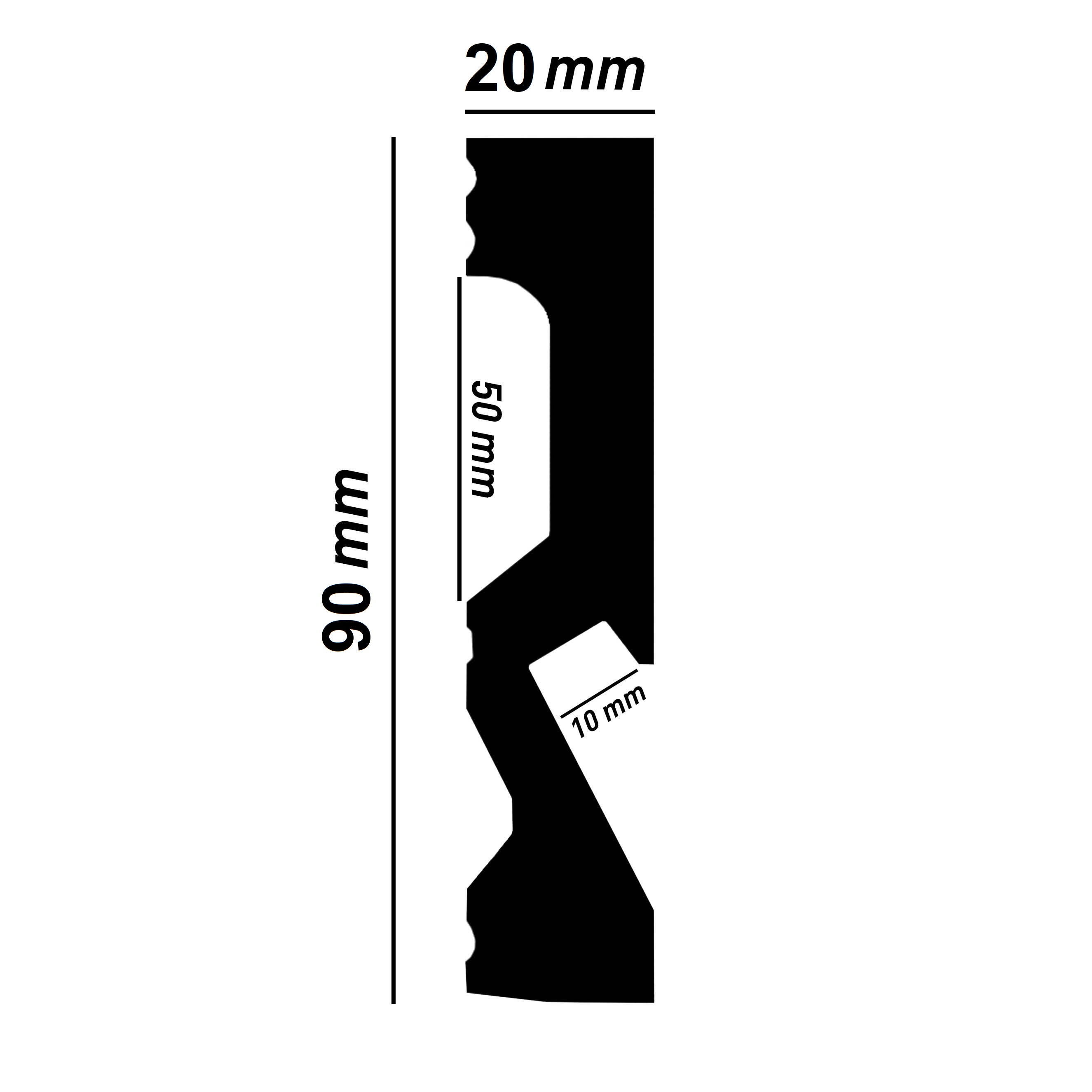 - GRÖSSE: Die Fußleiste mit den Abmessungen 20 x 90 x 2000 mm schafft einen sauberen Übergang zwischen Boden und Wand.