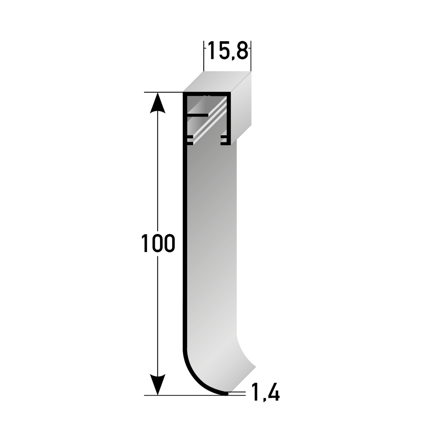 GRÖSSE: Die Metallsockelleiste mit den Abmessungen 15.8 x 100 x 2500 mm schafft einen sauberen Übergang zwischen Boden und Wand.