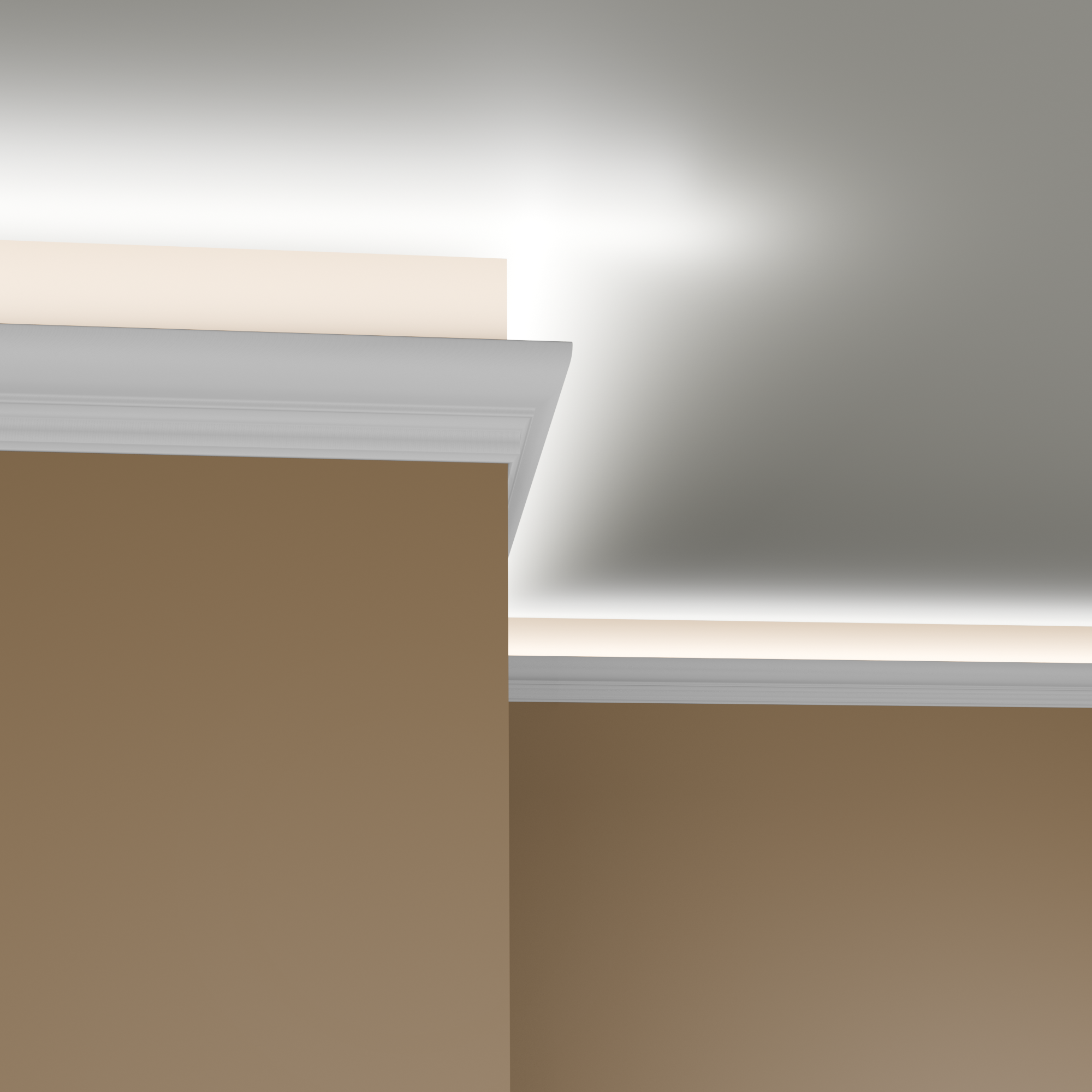 Unsere stilvoll gestalteten Deckenleisten sind für jede Raumgestaltung geeignet. Das zeitlose und moderne Profildesign sorgt für ein harmonisches Gesamtbild und eine nahtlose Verbindung von Wand und Decke. In der Nut dieser Leisten können flexible LED-Streifen eingefügt werden. Die indirekte LED-Beleuchtung schafft eine warme und einladende Atmosphäre. Passendes LED-Zubehör ist ebenfalls in unserem Shop erhältlich.