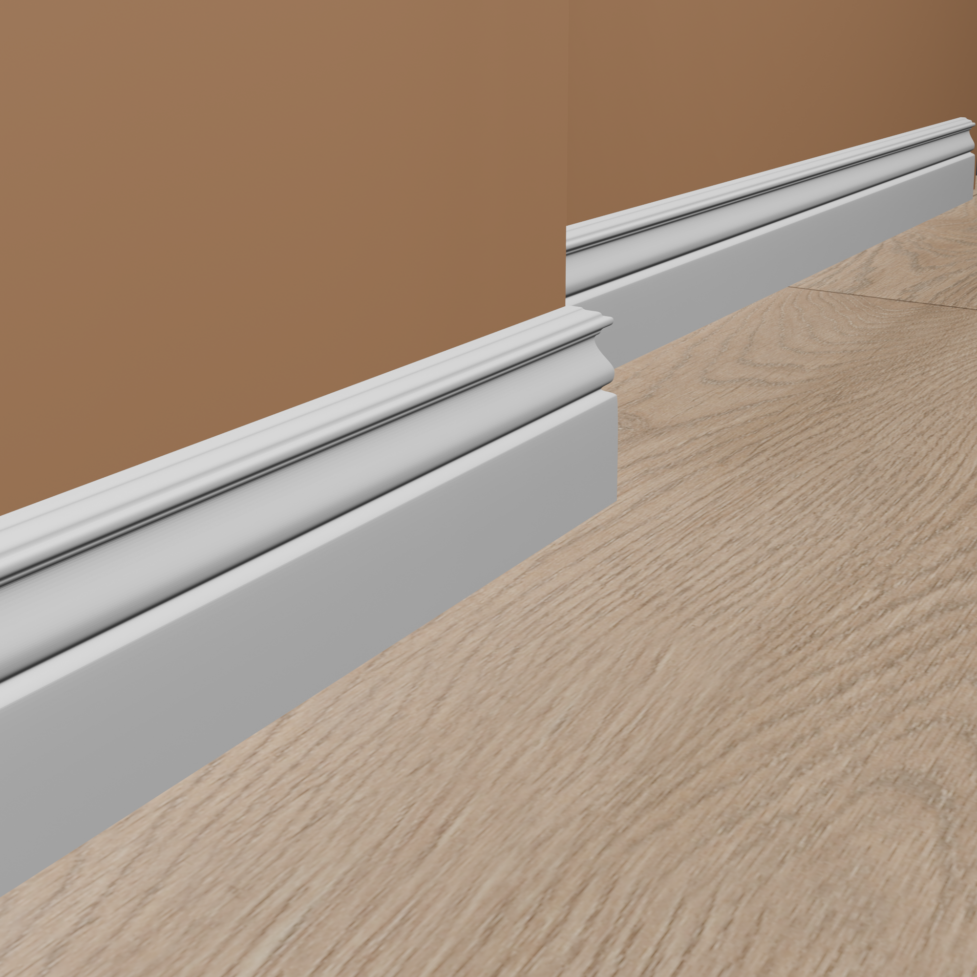 - MATERIAL: Diese Sockelleiste wurde aus PolyForce, einem hochdichten Polystyrol-Mix gefertigt und zeichnet sich durch ihre robuste und langlebige Qualität aus. Das Material ist vollkommen wasserbeständig - kein Aufquellen bei Nässe.