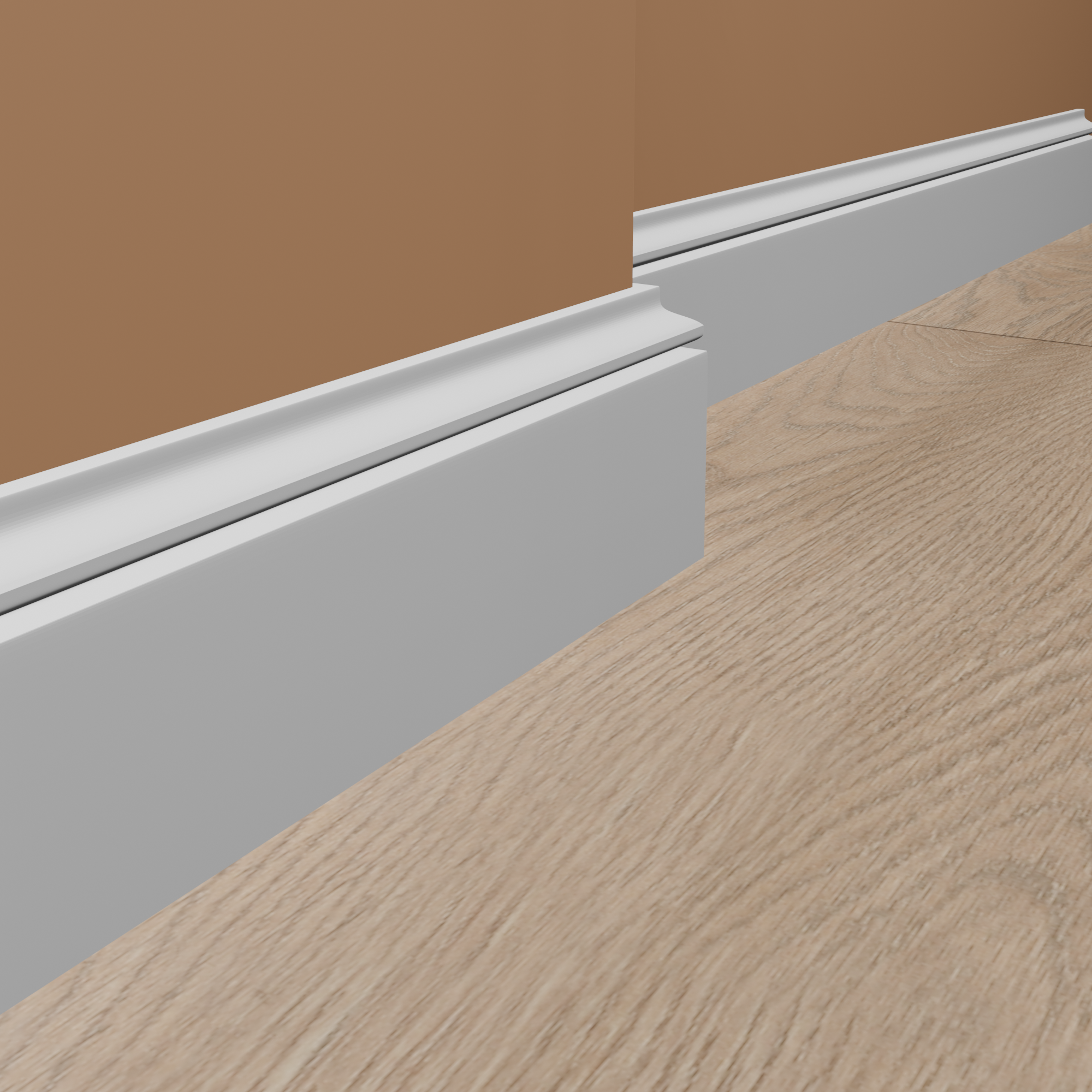 - MATERIAL: Diese Sockelleiste wurde aus PolyForce, einem hochdichten Polystyrol-Mix gefertigt und zeichnet sich durch ihre robuste und langlebige Qualität aus. Das Material ist vollkommen wasserbeständig - kein Aufquellen bei Nässe.