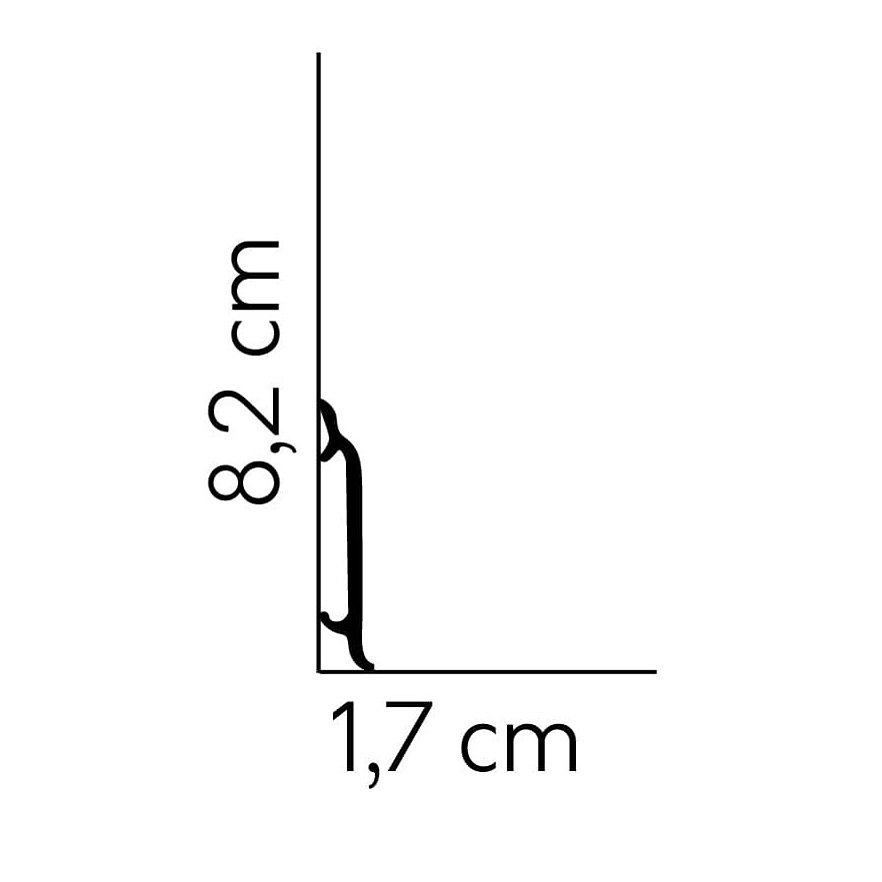 - GRÖSSE: Die Fußleiste mit den Abmessungen 17 x 82 x 2000 mm schafft einen sauberen Übergang zwischen Boden und Wand.