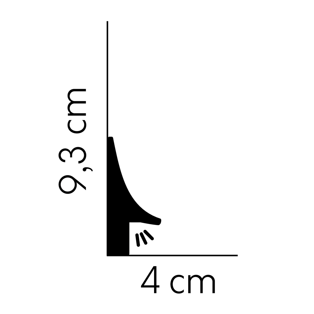 - GRÖSSE: Die Fußleiste mit den Abmessungen 42 x 93 x 2000 mm schafft einen sauberen Übergang zwischen Boden und Wand.