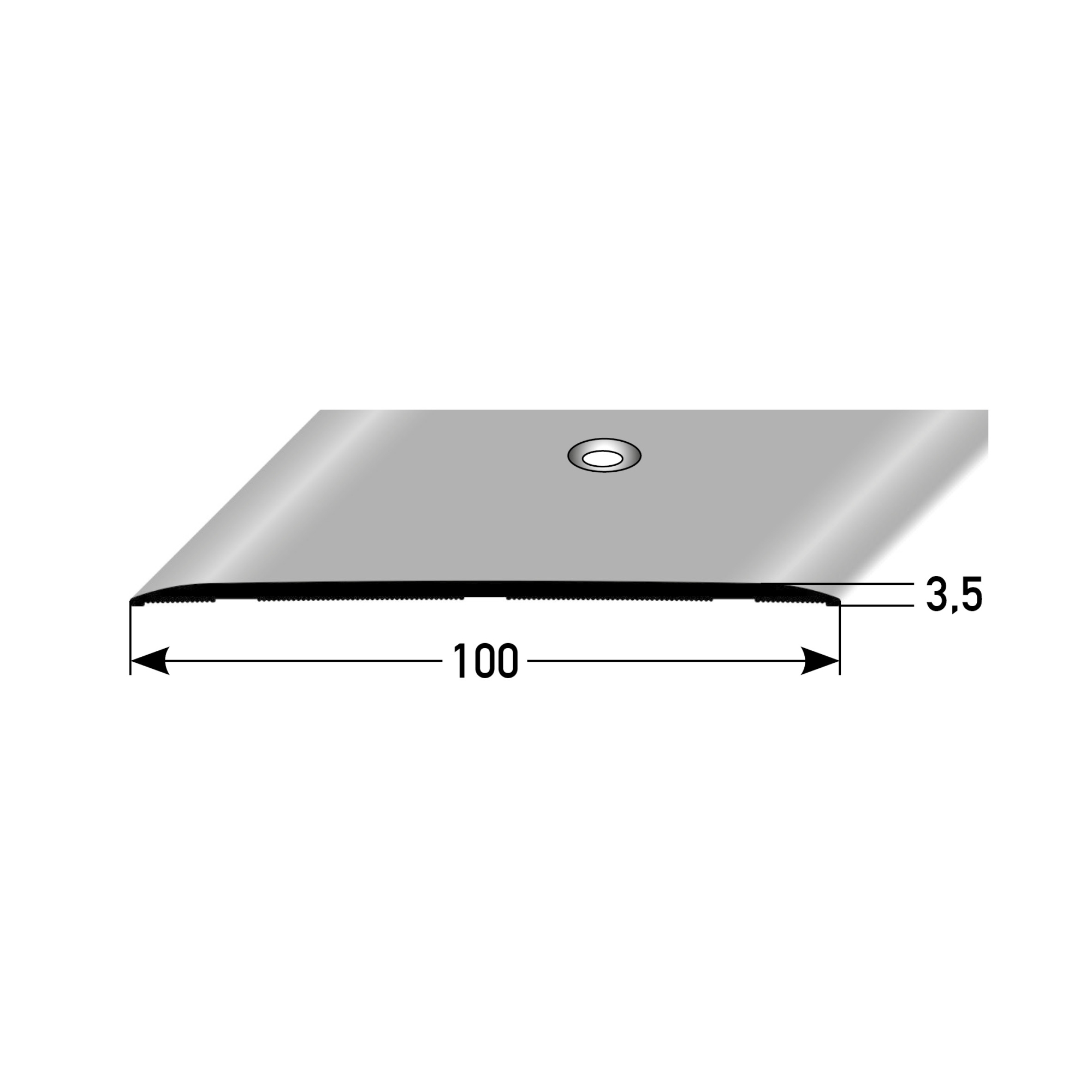 GRÖSSE: Das Übergangsprofil mit den Abmessungen 3.5 x 100 x 2700 mm schafft einen sauberen Übergang zwischen verschiedenen Bodenbelägen.