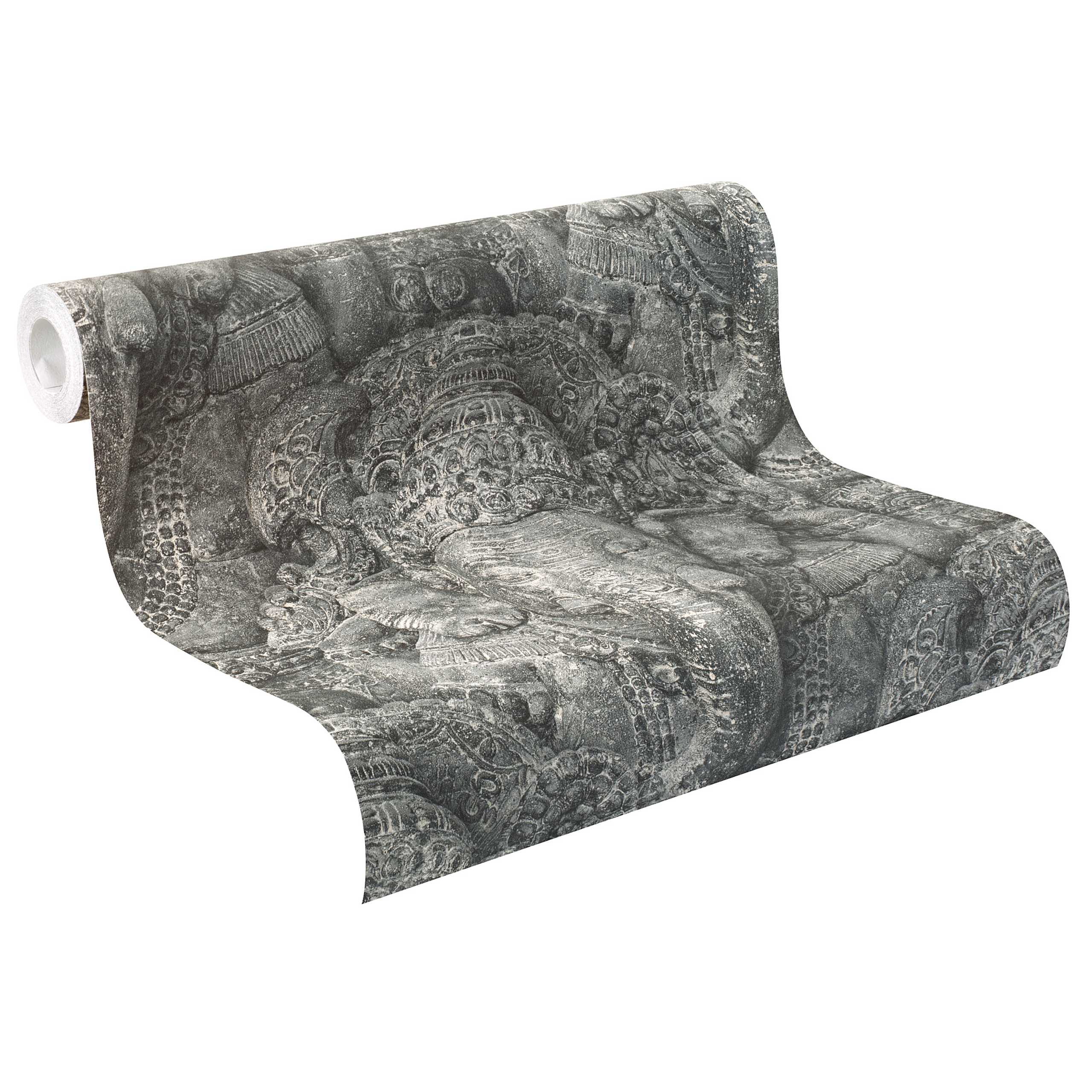 Mir gefällt das ausdrucksstarke Vintage-Motiv dieser Vliestapete. Es sieht aus wie Stein. Die graue Farbe wirkt ruhig und dennoch sehr präsent. Das Muster hat Tiefe und sieht fast wie eine Skulptur aus. Das Material ist gut, die Oberfläche hochwertig und stabil. Die Tapete war einfach anzubringen.