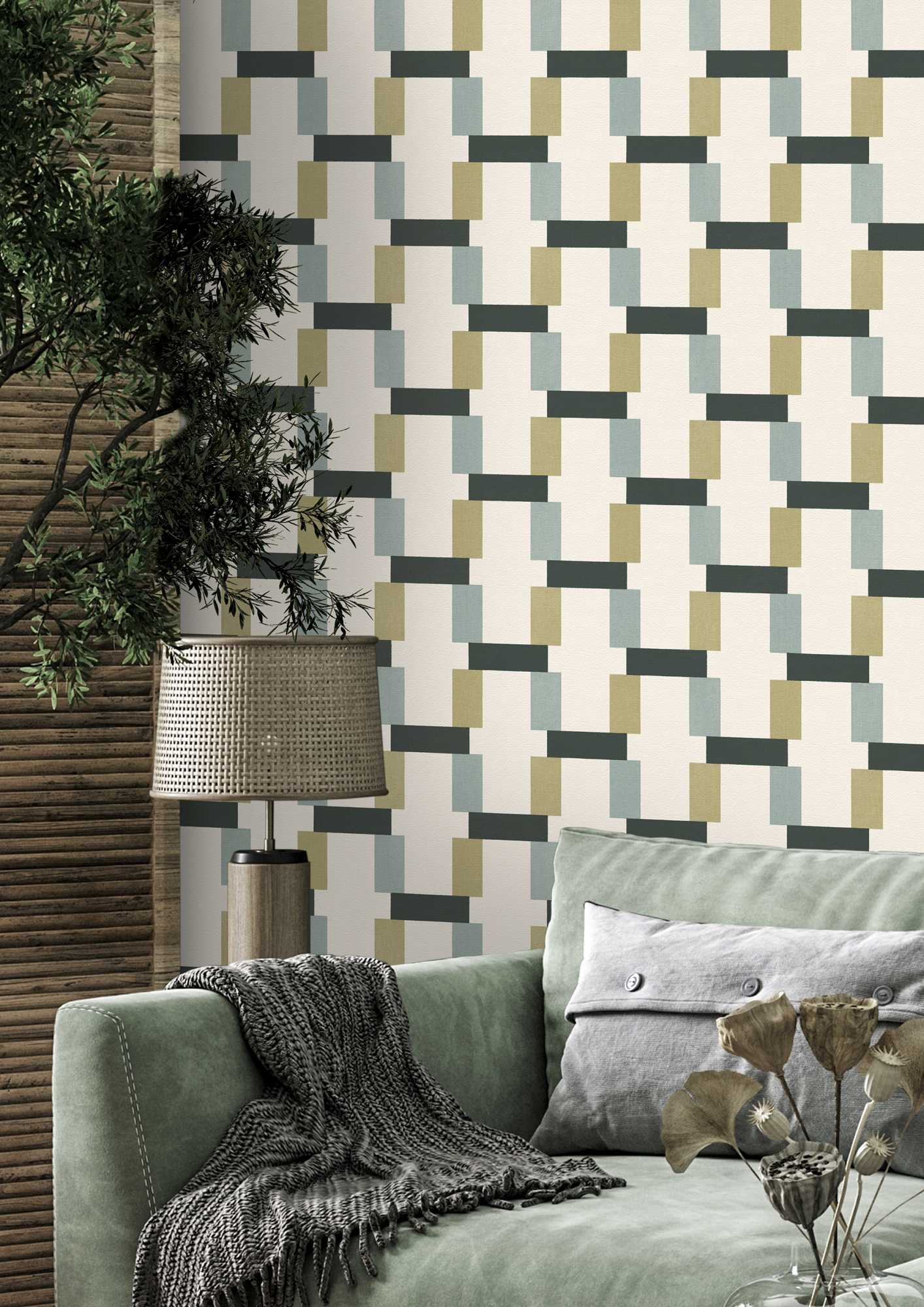 - Farbe der Tapete: Grün