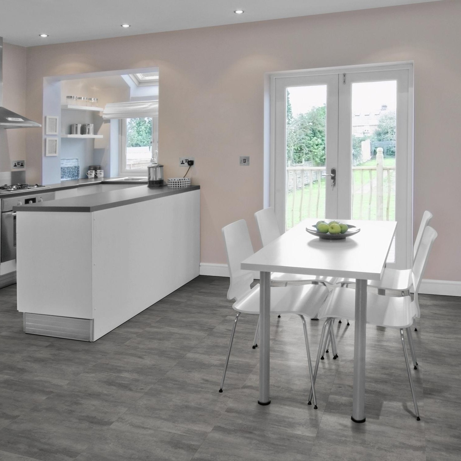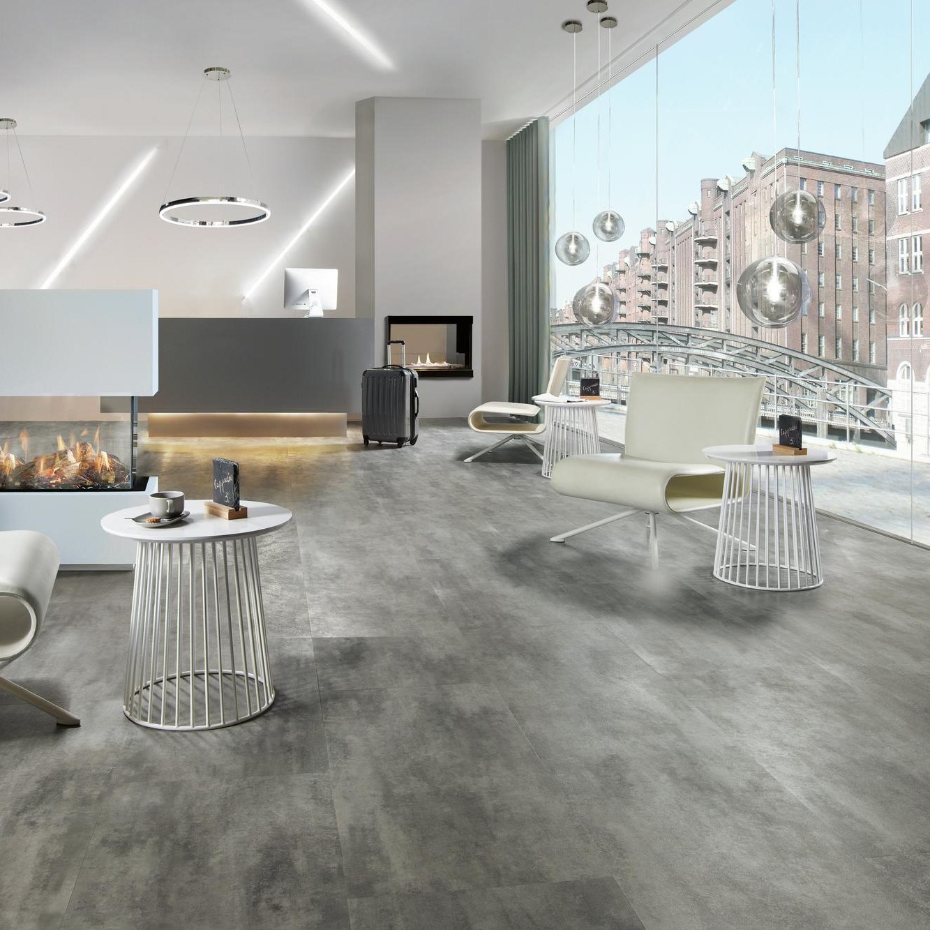 Der Rigid Vinylboden mit authentischer Steinstruktur schafft ein modernes Ambiente in Deinen Räumen.