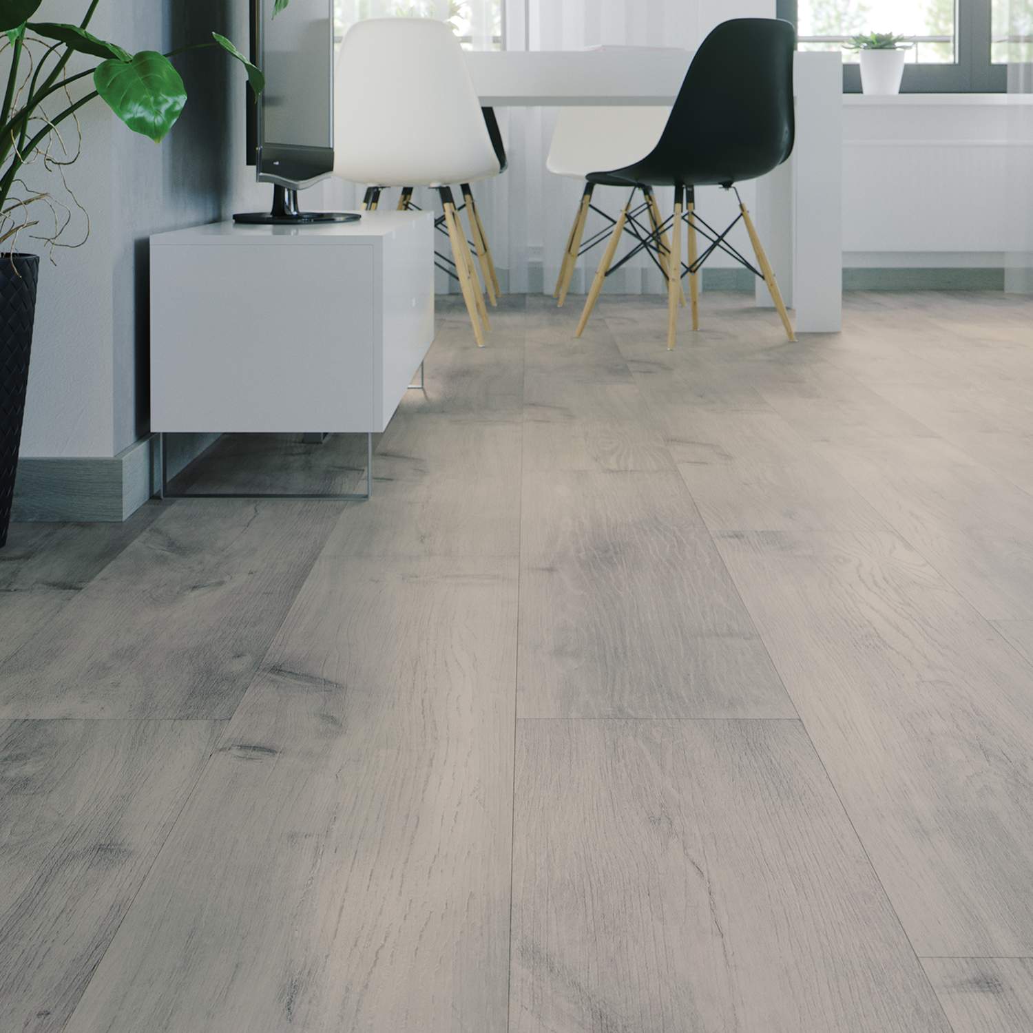 - FUGENBILDUNG OHNE FASE: Die Fugenbildung ohne Fase verleiht dem Boden eine glatte Oberfläche und sorgt für ein zeitloses modernes Erscheinungsbild