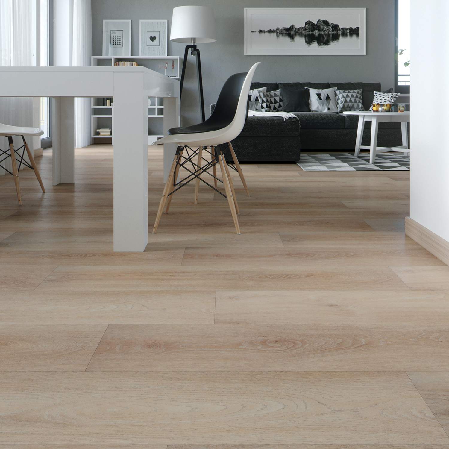 - FUGENBILDUNG OHNE FASE: Die Fugenbildung ohne Fase verleiht dem Boden eine glatte Oberfläche und sorgt für ein zeitloses modernes Erscheinungsbild