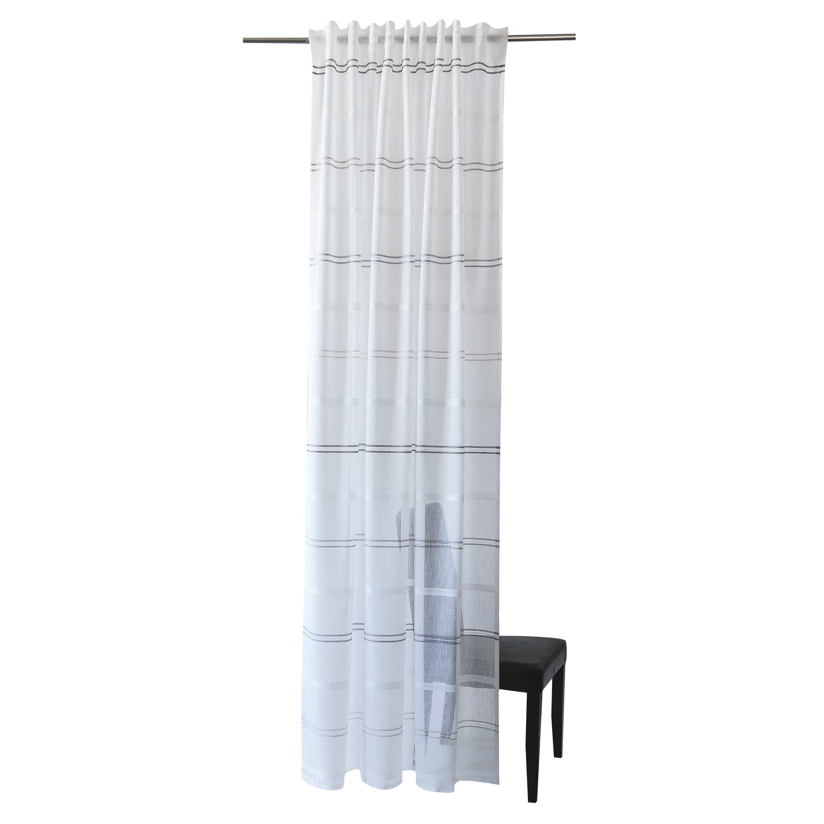 Landlook für Zuhause. Auf dem strukturierten Schlaufenschal erzeugen die Fäden feine Webspiele. Die zarten Querstreifen unterstreichen den ländlichen Look der Gardine und erschaffen in jedem Zuhause eine wohnliche Atmosphäre in skandinavischen Chic.